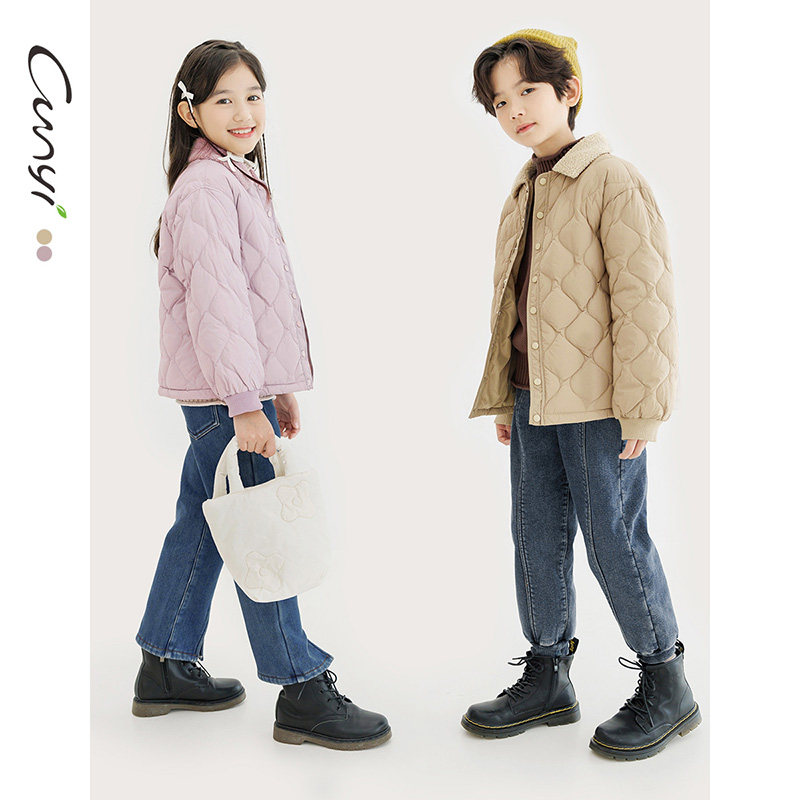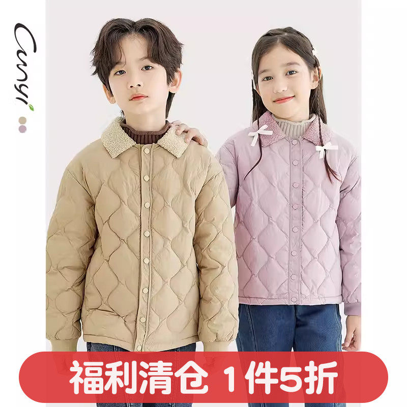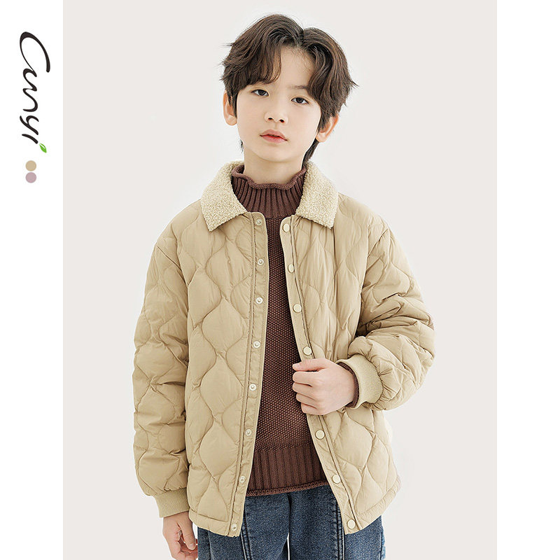 📚 Cunyi纯一良品童装儿童羽绒服秋冬中大童简约保暖毛绒翻领外套