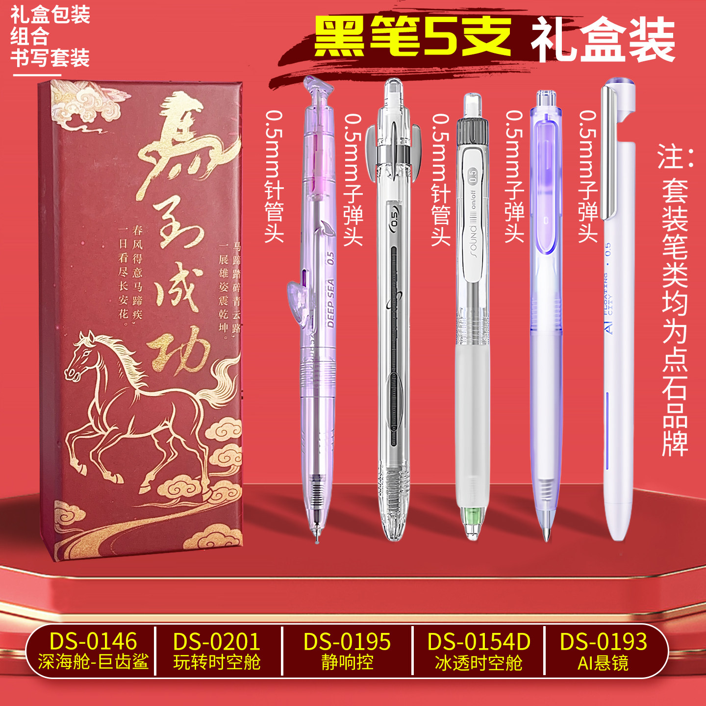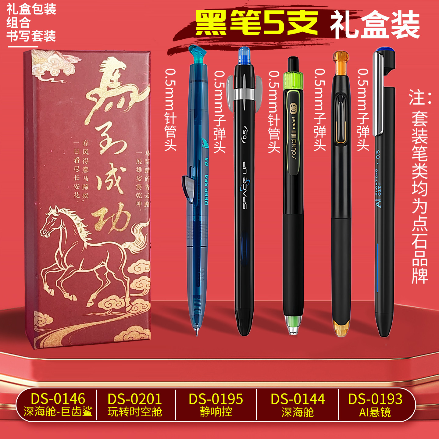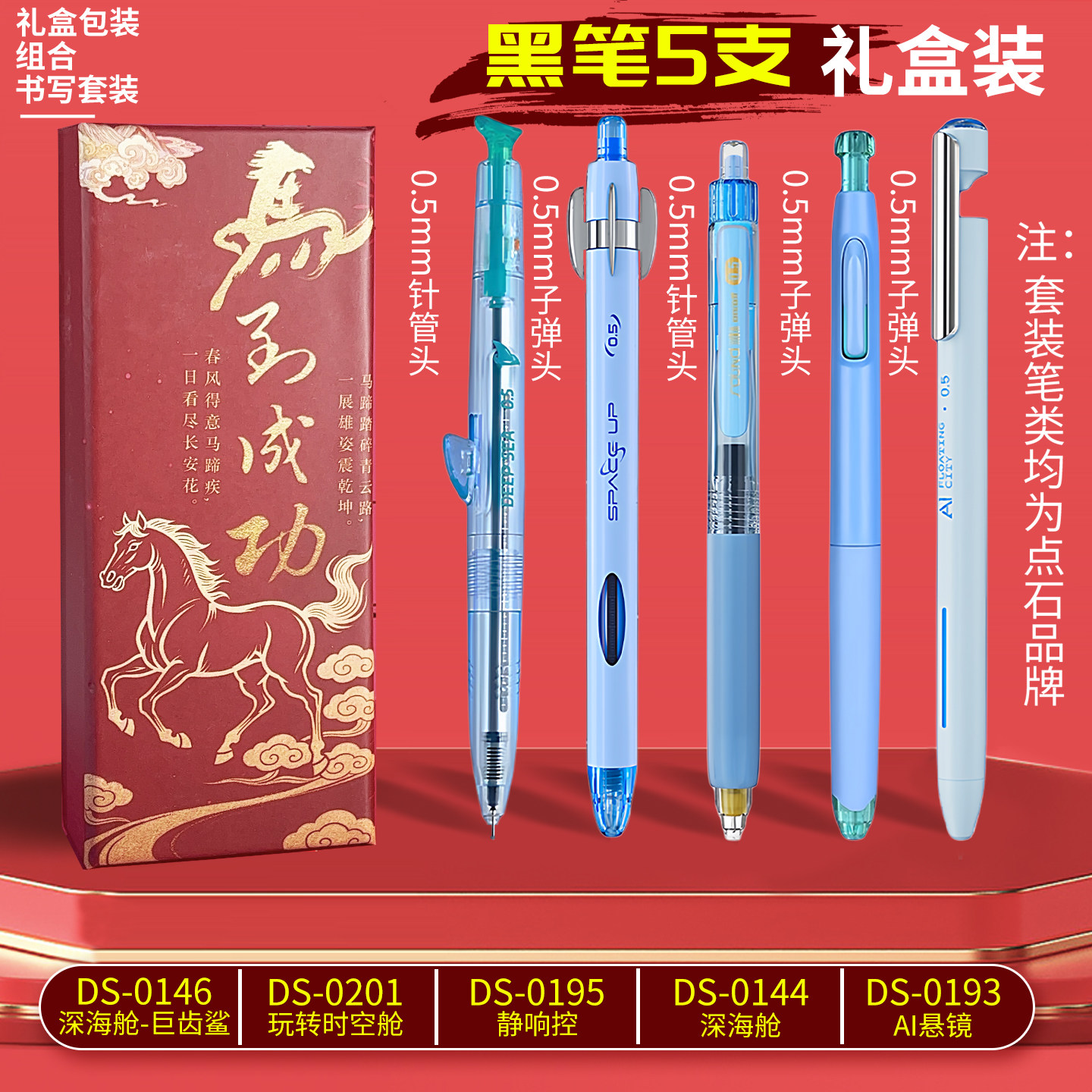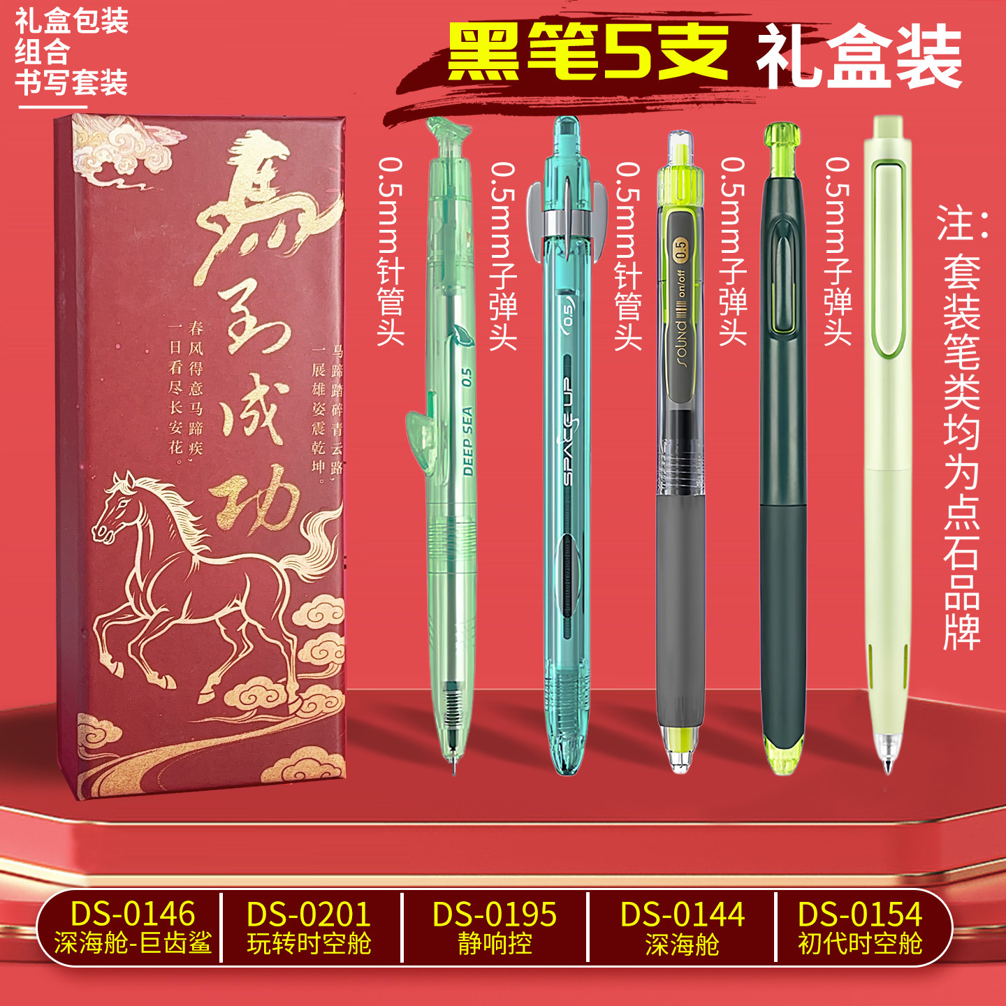 📚 马年礼盒点石制笔中性笔深海舱巨齿鲨组合礼盒装新年礼物ins学生刷题笔考试新品黑色签字笔初中高中新年祝福