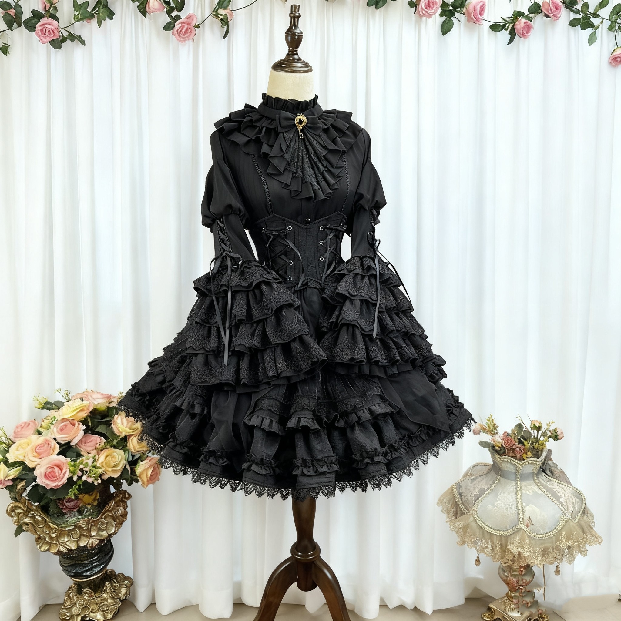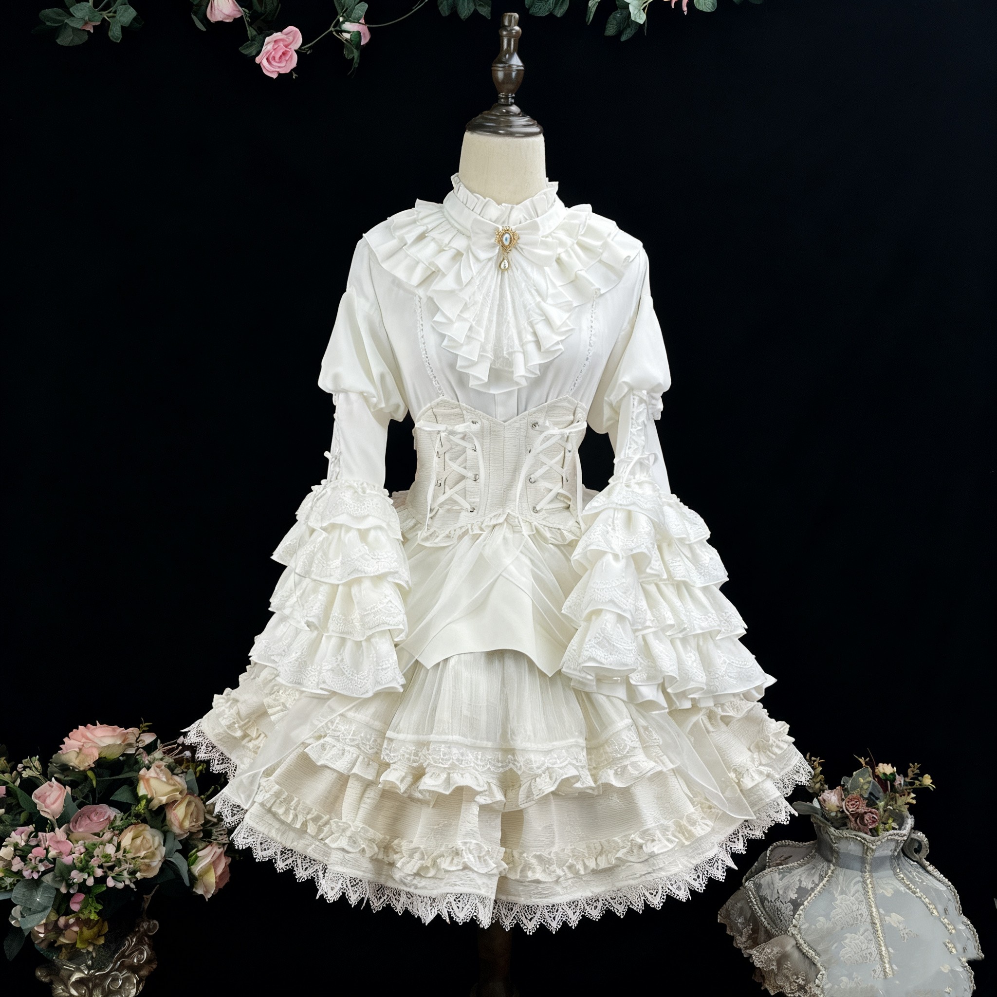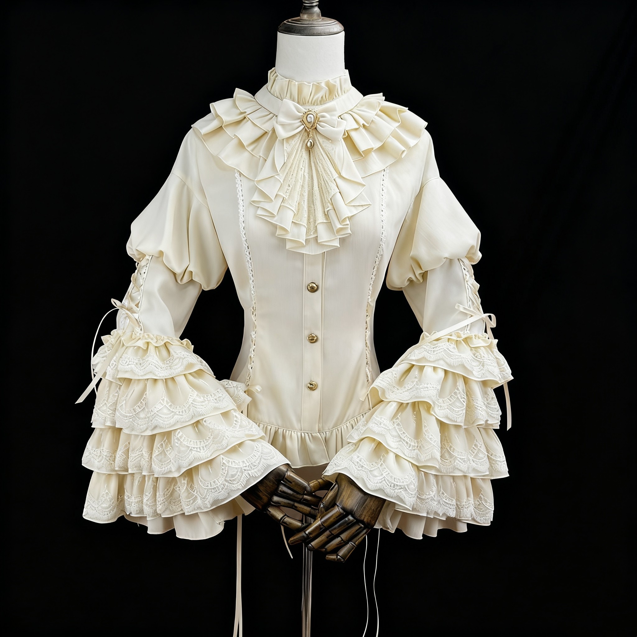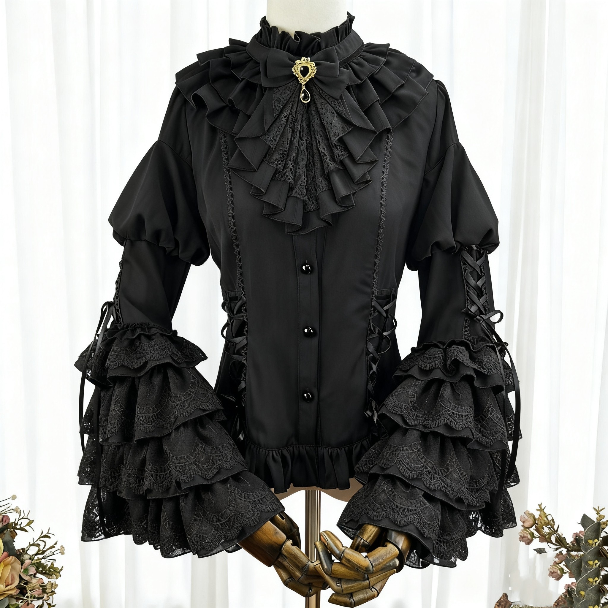 📚 中世纪Lolita上衣复古哥特宫廷风大姬袖衬衫打底收腰款洛丽塔衬衣