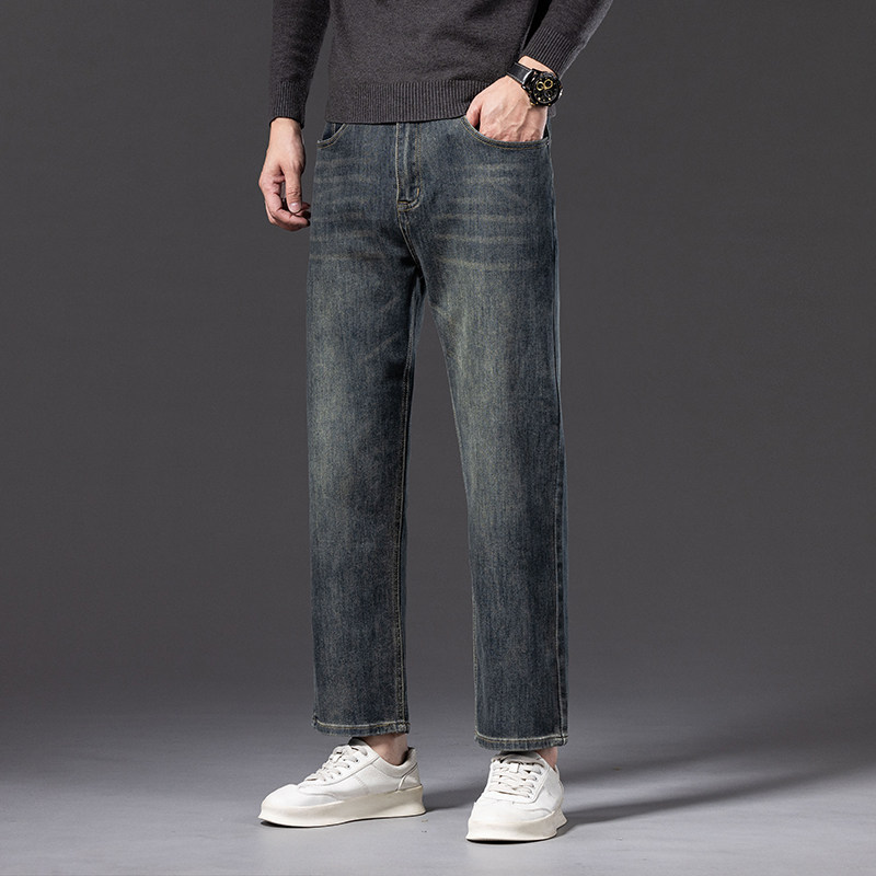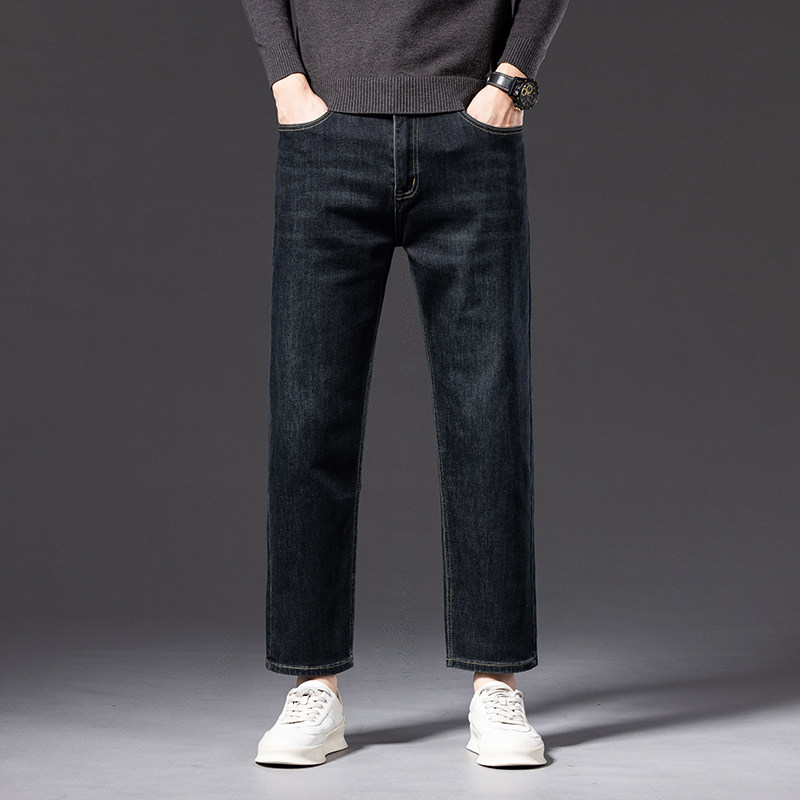 📚 啄木鸟秋冬新款九分牛仔裤男士时尚百搭宽松直筒冬天加绒加厚裤子