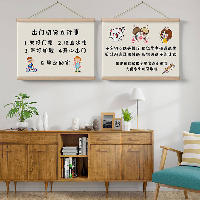 📚 简约温馨欢迎回家进门卷轴挂画客厅卧室墙壁改造电表箱遮挡装饰画