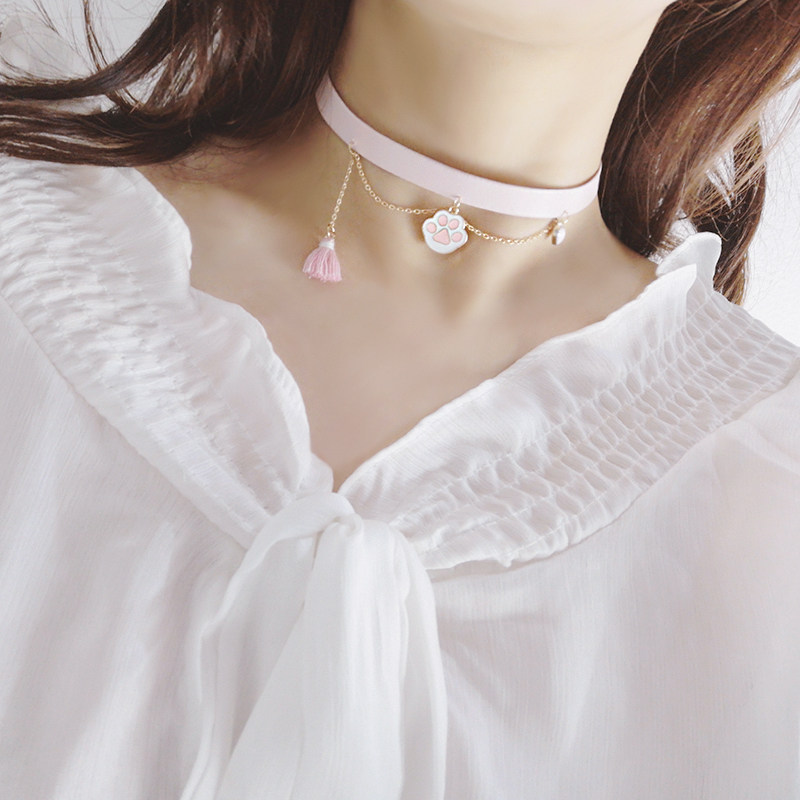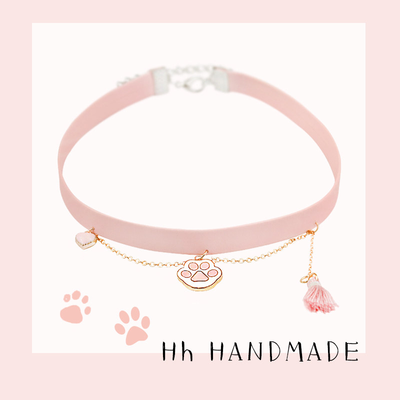 📚 粉色猫爪甜美choker项圈可爱少女原创设计颈链女lolita短款锁骨链