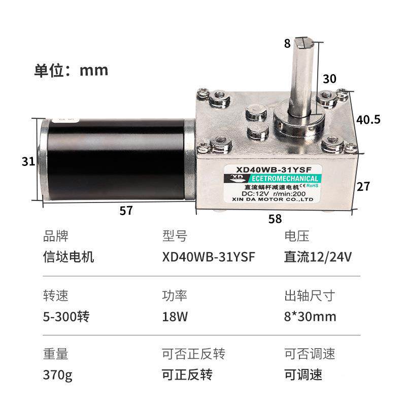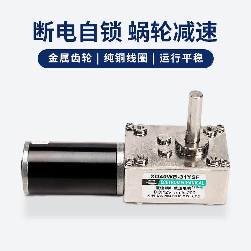 📚 12V减速电机直流24断电自锁可扭调正V反转大力涡轮蜗杆速低速32马