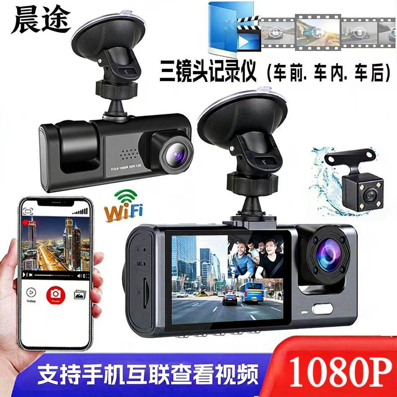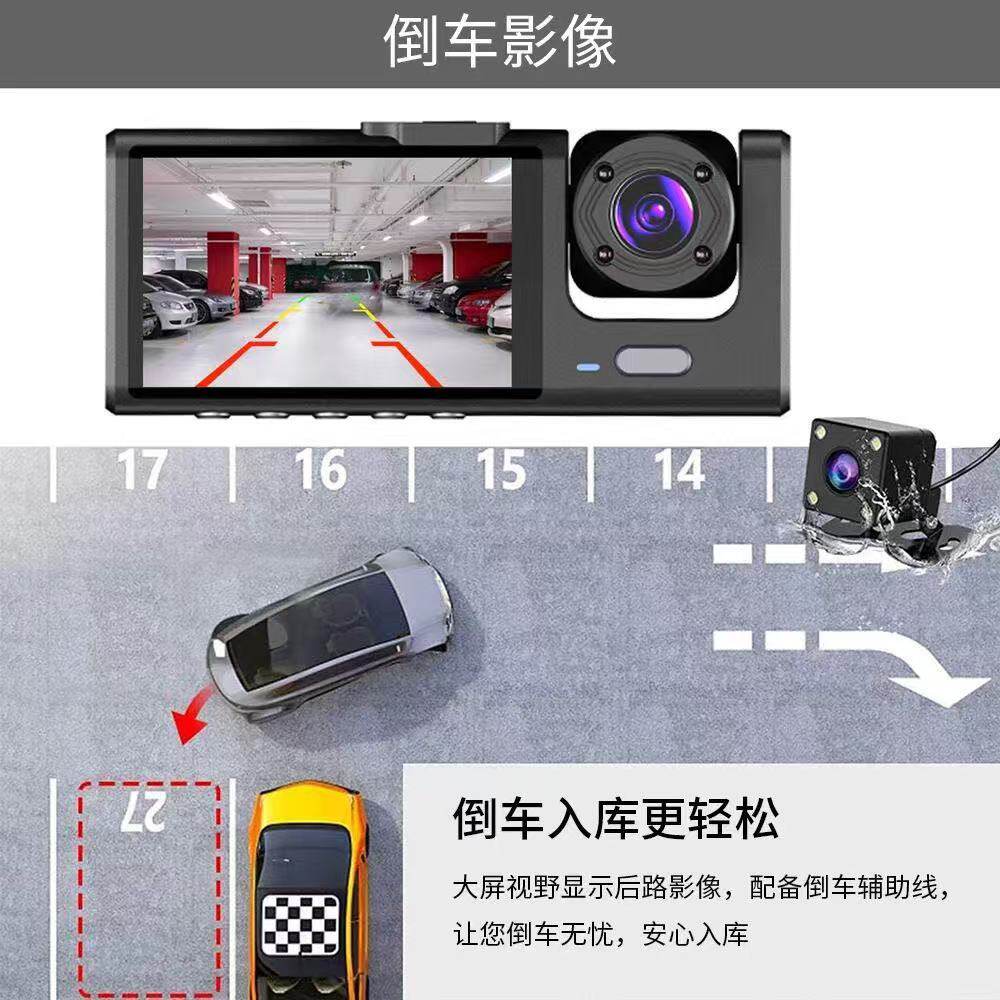 📚 三录高清行车记录仪1080P超清夜视手机互联车前车内车后同步拍摄