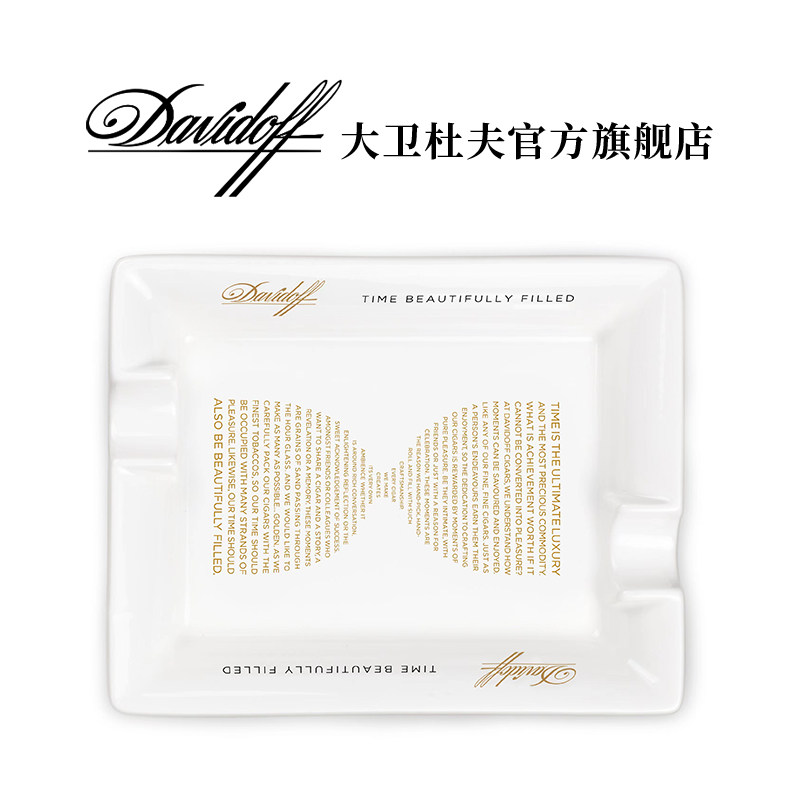 📚 大卫杜夫雪茄烟灰缸白色陶瓷双搁置槽工具便携可水洗礼盒装瑞士