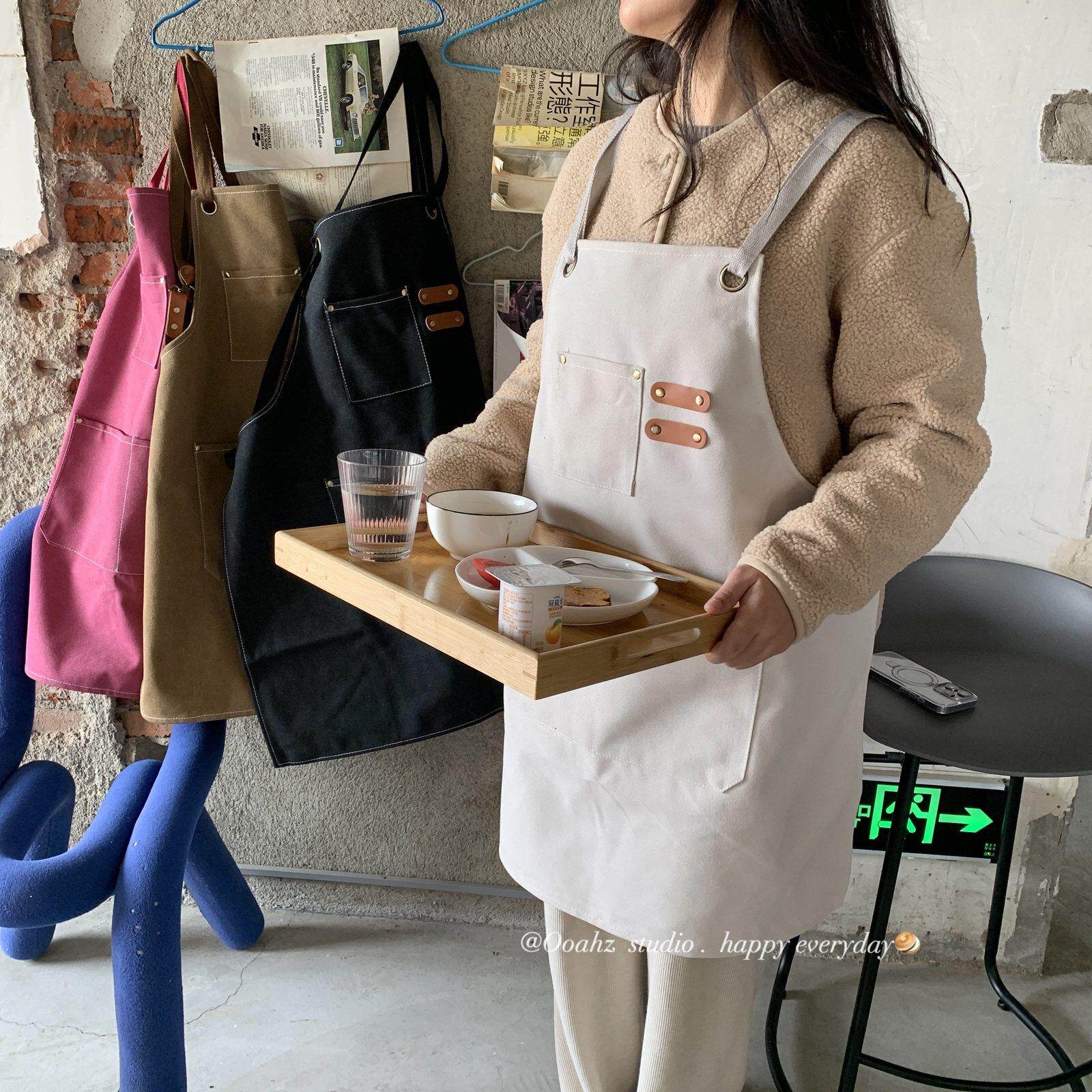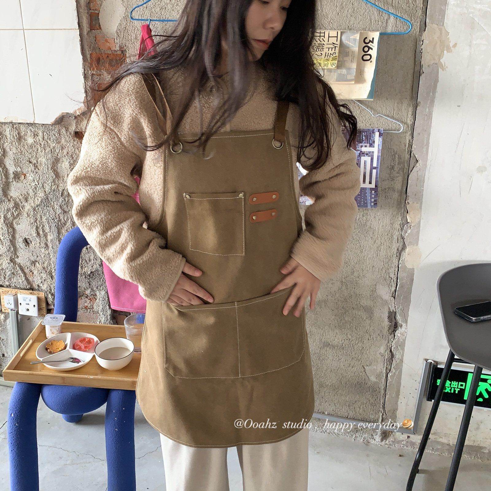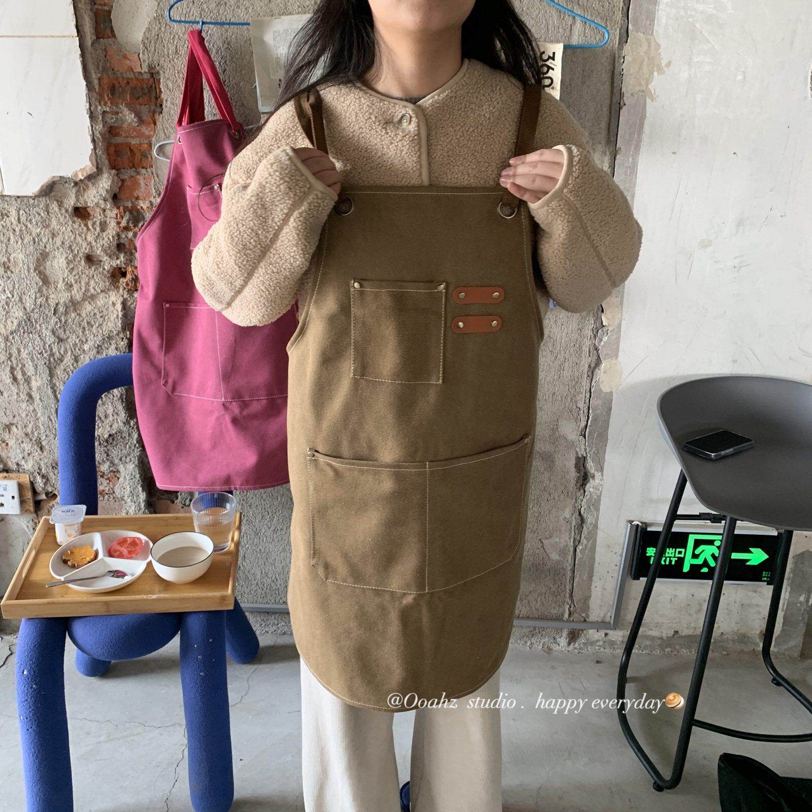 📚 值日生~多口袋厨房做饭工作围裙 微防水粗牛仔加厚耐磨服务生罩衣