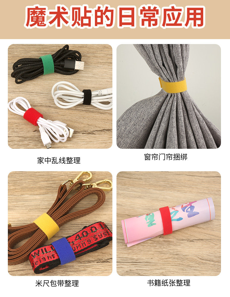 📚 20米背对背魔术贴扎带子母扣自粘式束线捆绑带数据线电线整理线带