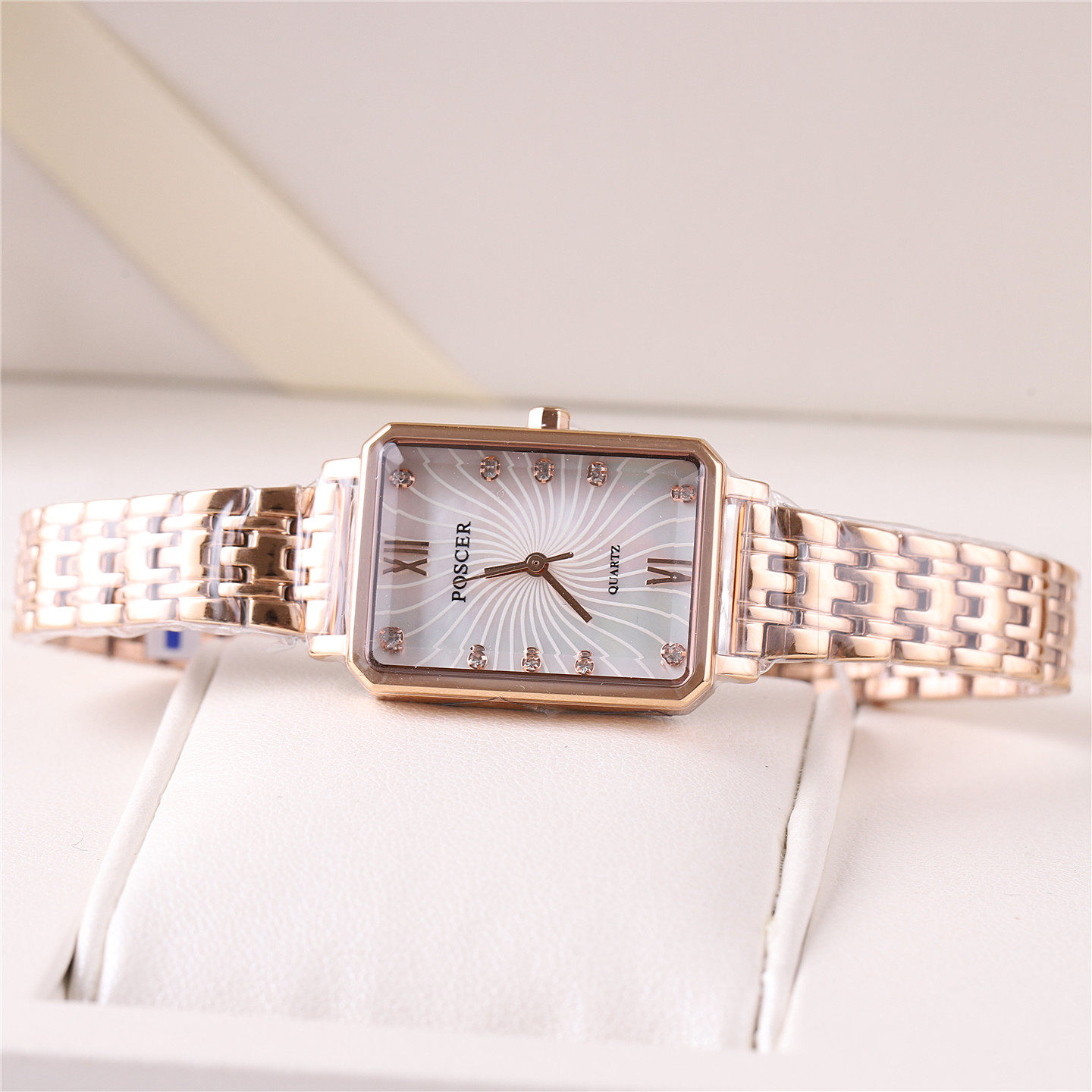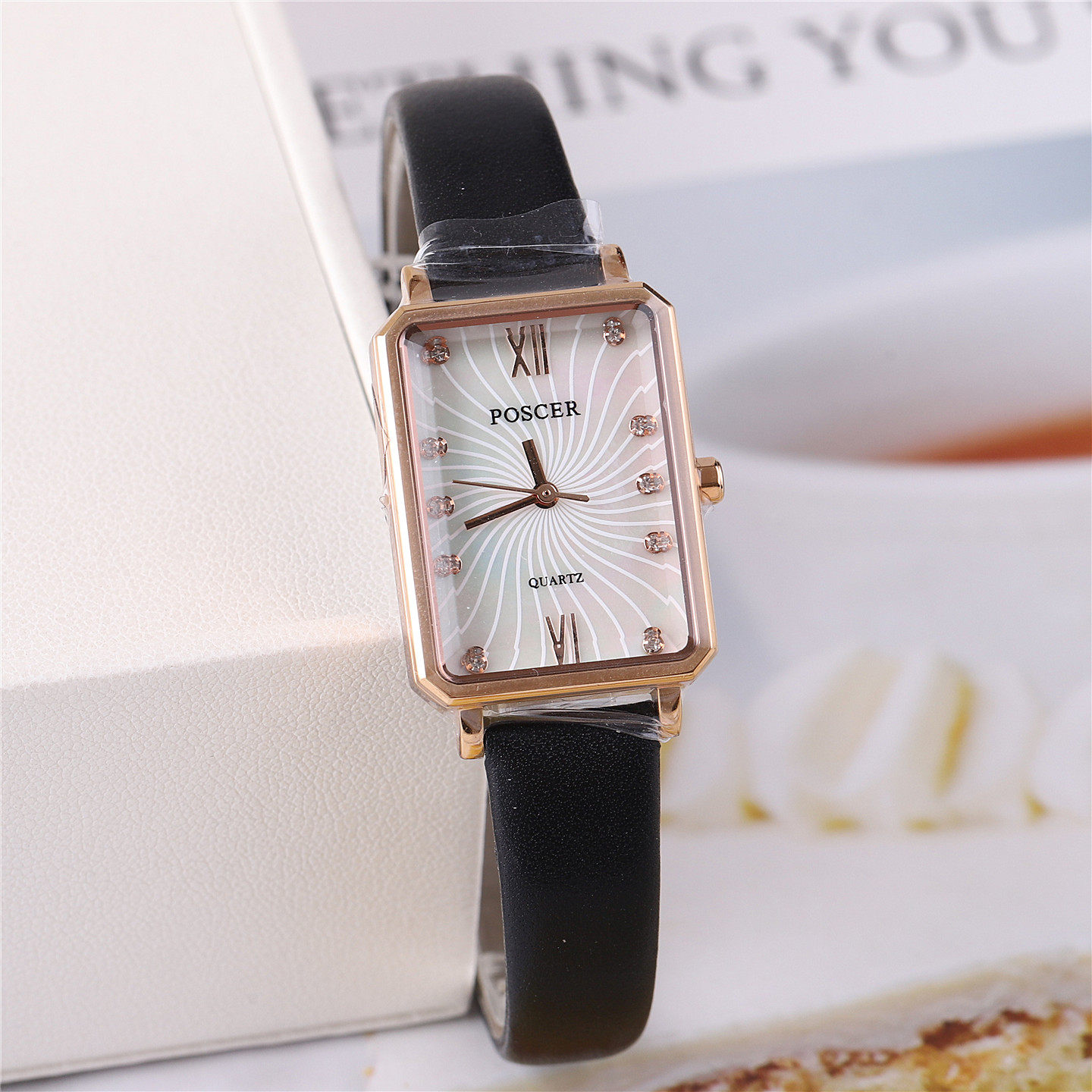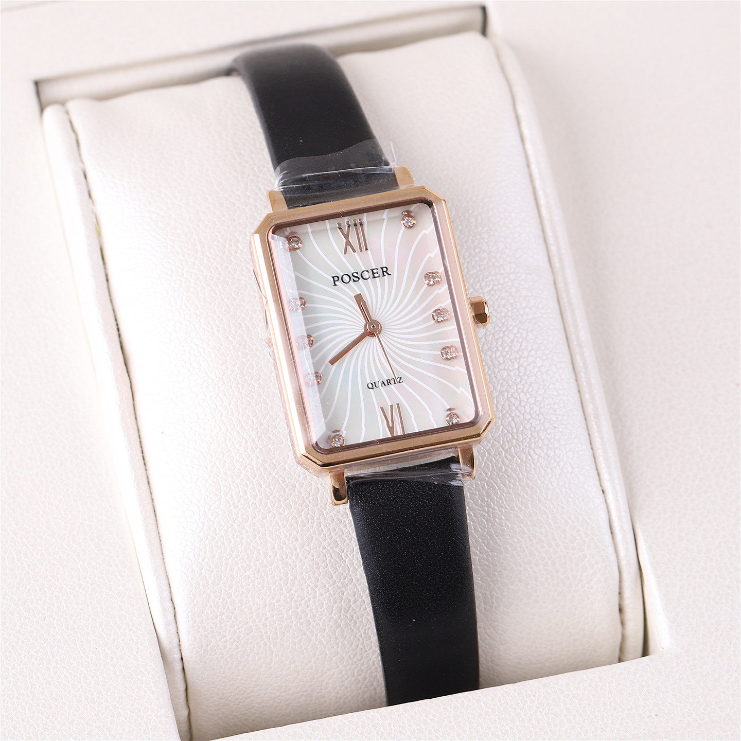 📚 正品poscer宝时捷手表女表女士方盘超薄石英表真皮带保时捷50107
