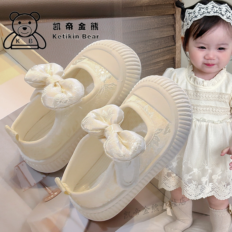 📚 女宝宝软底布鞋2026夏季新款蝴蝶结幼儿园室内休闲鞋子小童公主风
