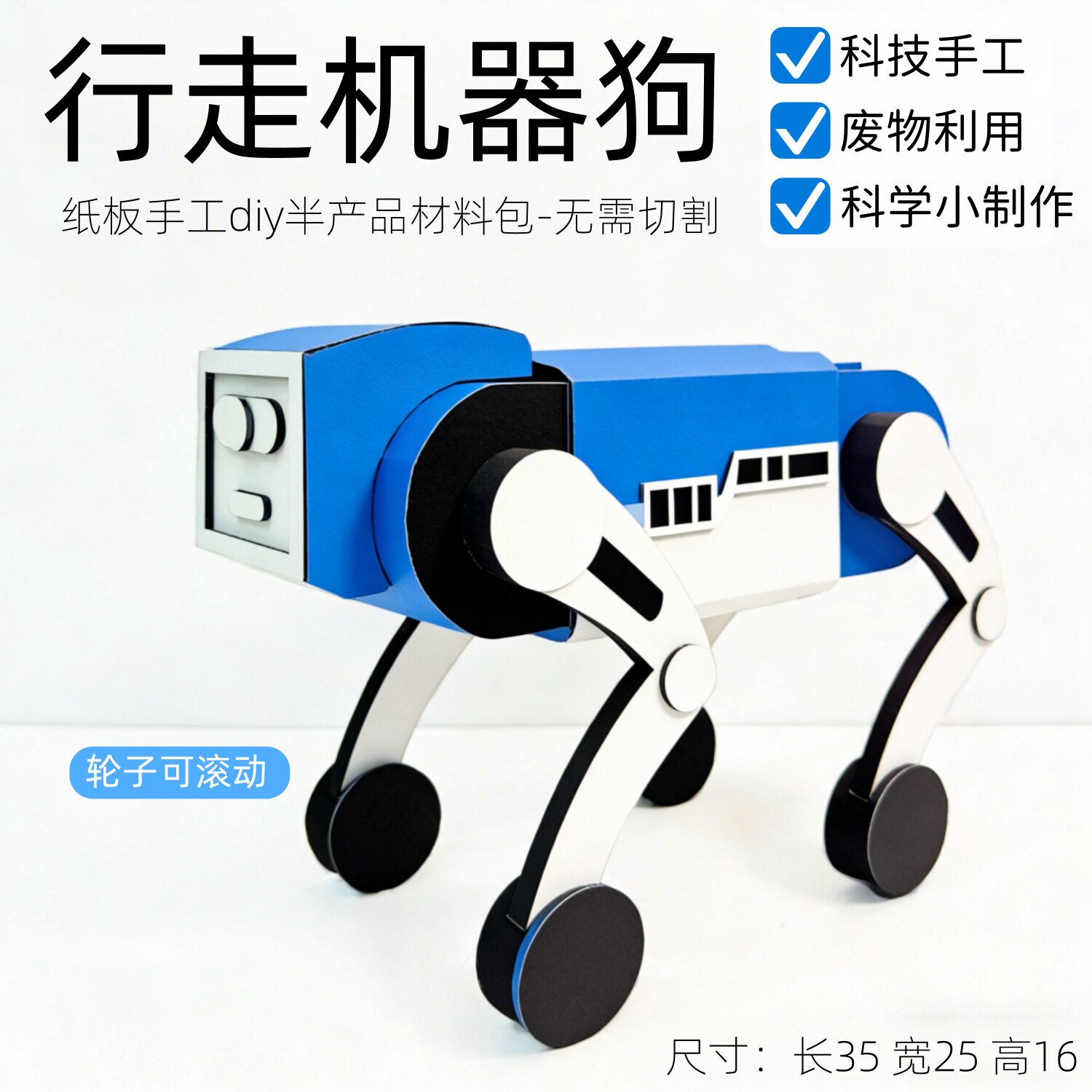 📚 行走机器狗模型手工制作材料包科技军事爱国主题科学废旧纸板利用