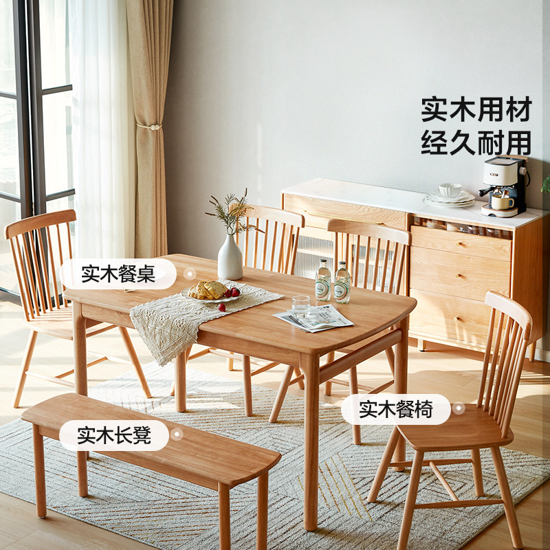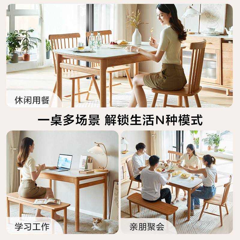 📚 林氏家居实木餐桌椅新款家用原木风家具岩板饭桌子小户型