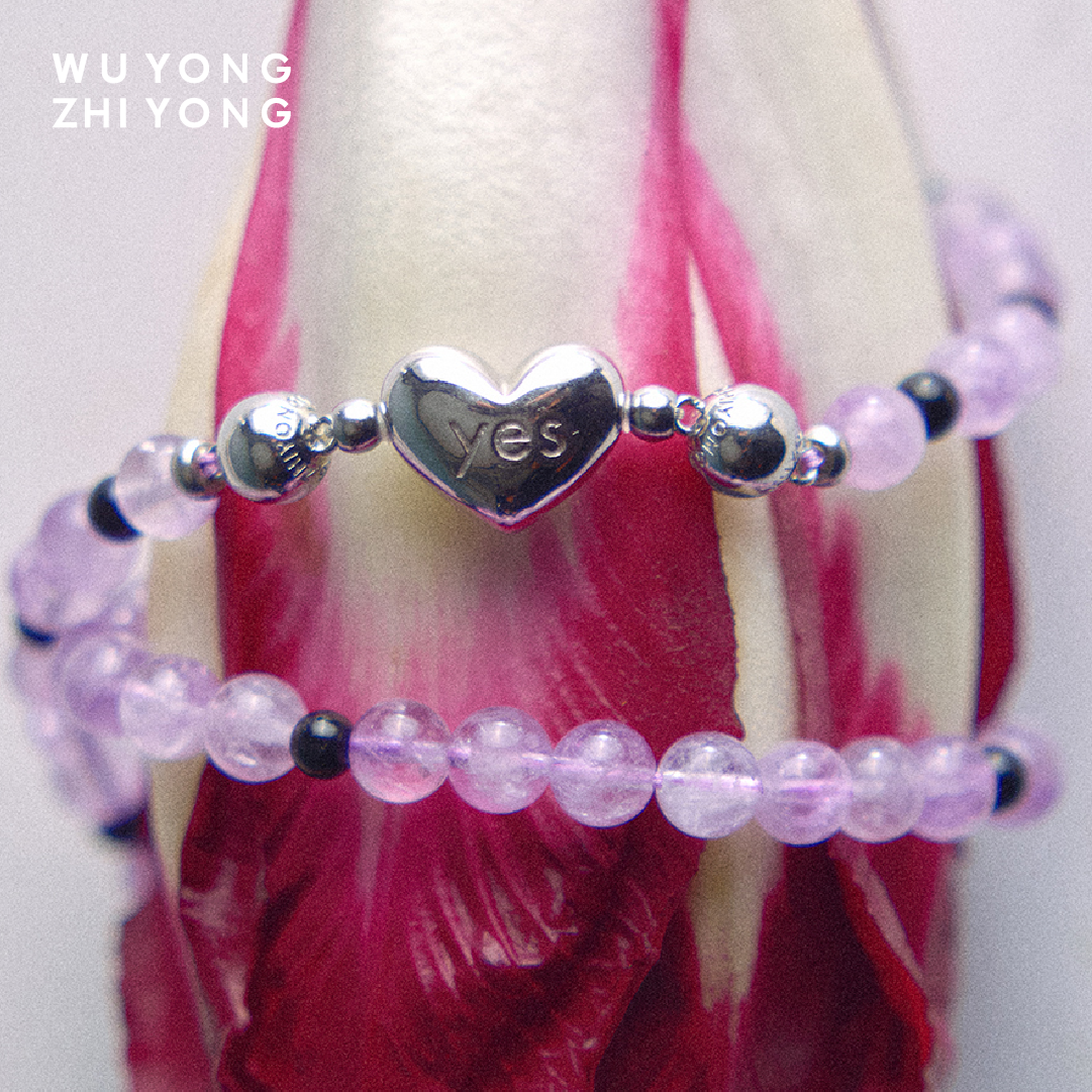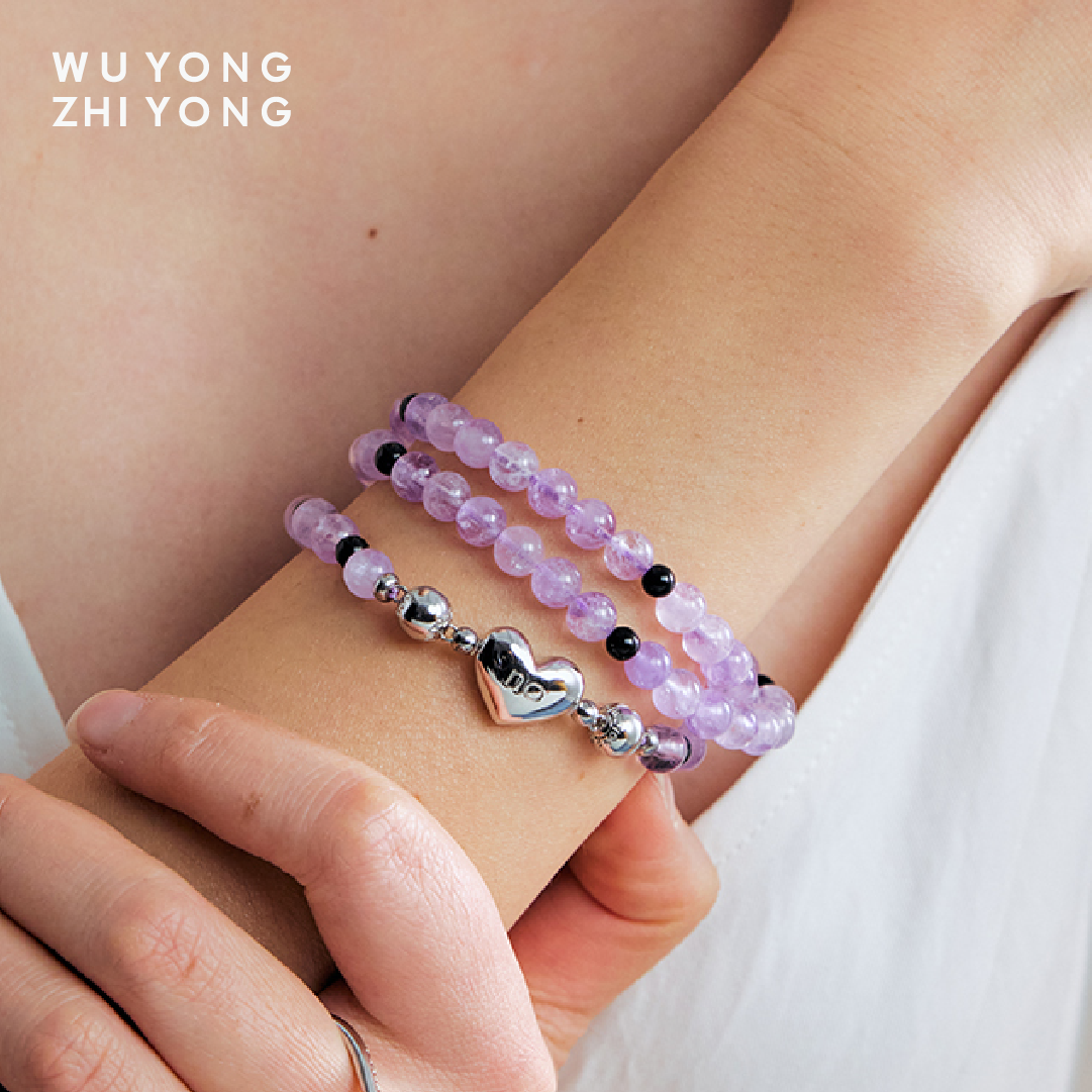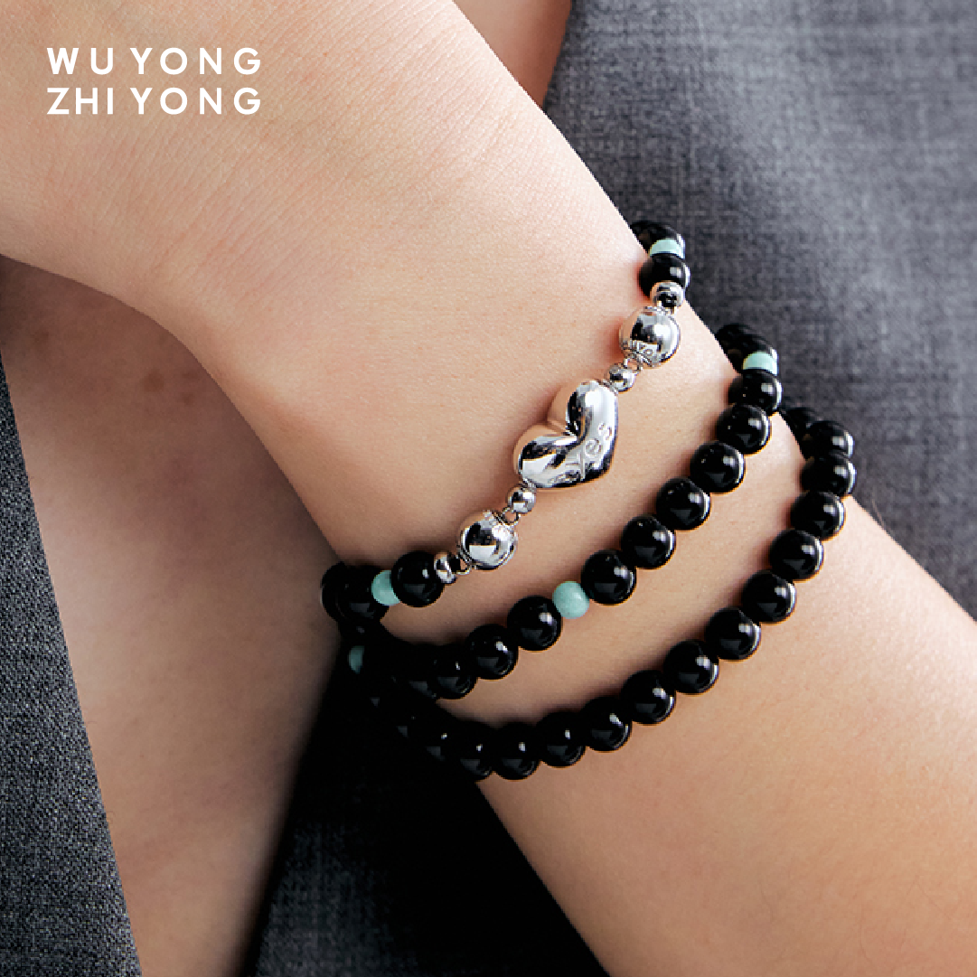📚 无用之用「情人节系列」925银黑玛瑙紫水晶绿松石爱心三圈手链
