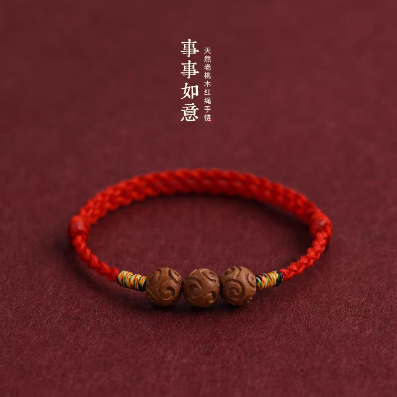 📚 天然桃木本命年转运珠男女红绳手链脚链宝宝防惊吓编织手绳脚绳