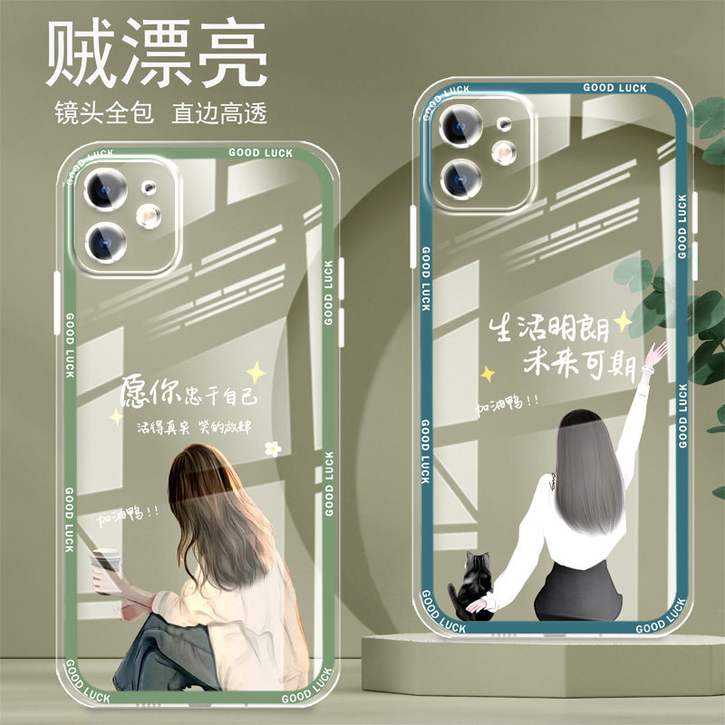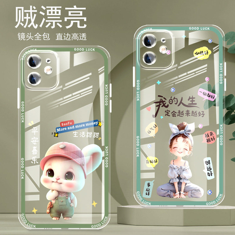 📚 直边晶透苹果12手机壳12mini新款12pro全包边镜头全包防摔新年保护套女硅胶软壳可爱个性卡通创意新品高级感