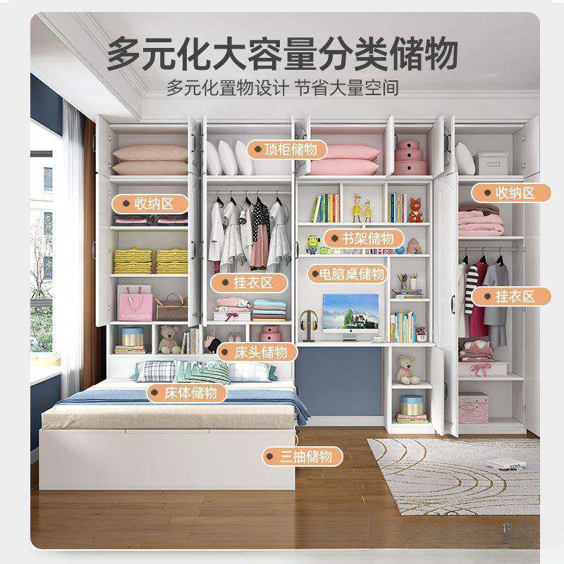 📚 榻榻米衣柜床一体衣帽间带书桌衣橱组合小户型多功能儿童床可改制