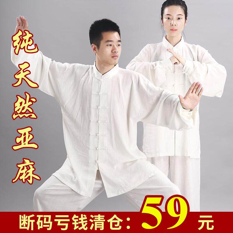 📚 高档极新款太极服男女款亚麻棉麻加演厚宏春秋出装中老年练功服表