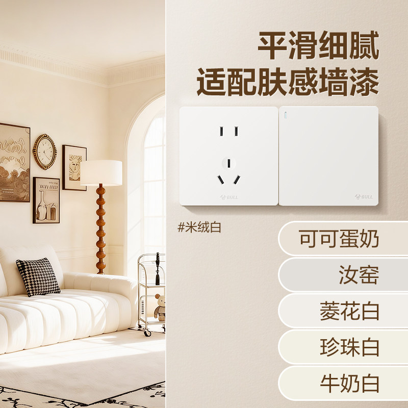 📚 公牛官方旗舰店奶油风空调16A开关插座五孔面板肤感哑光g12米绒白