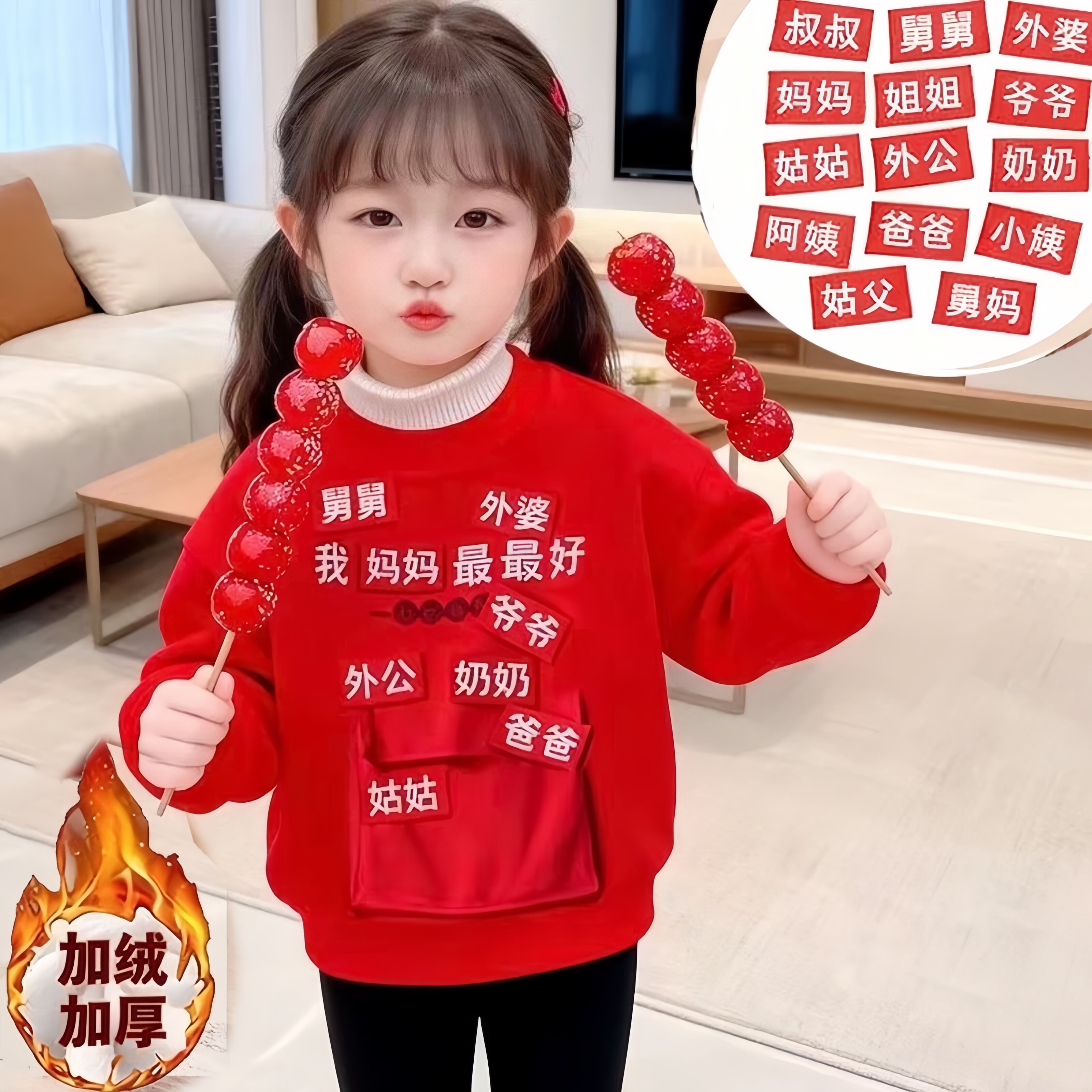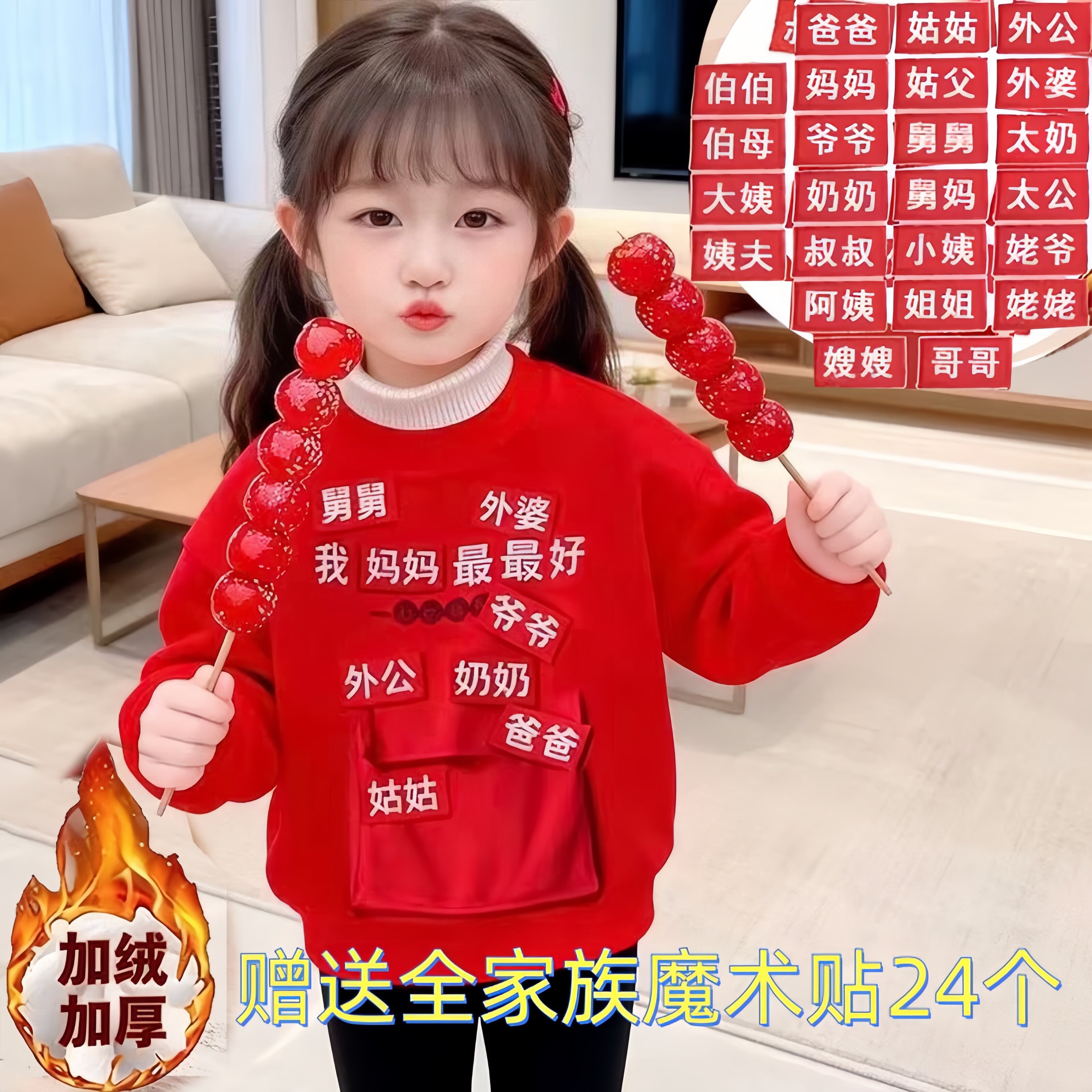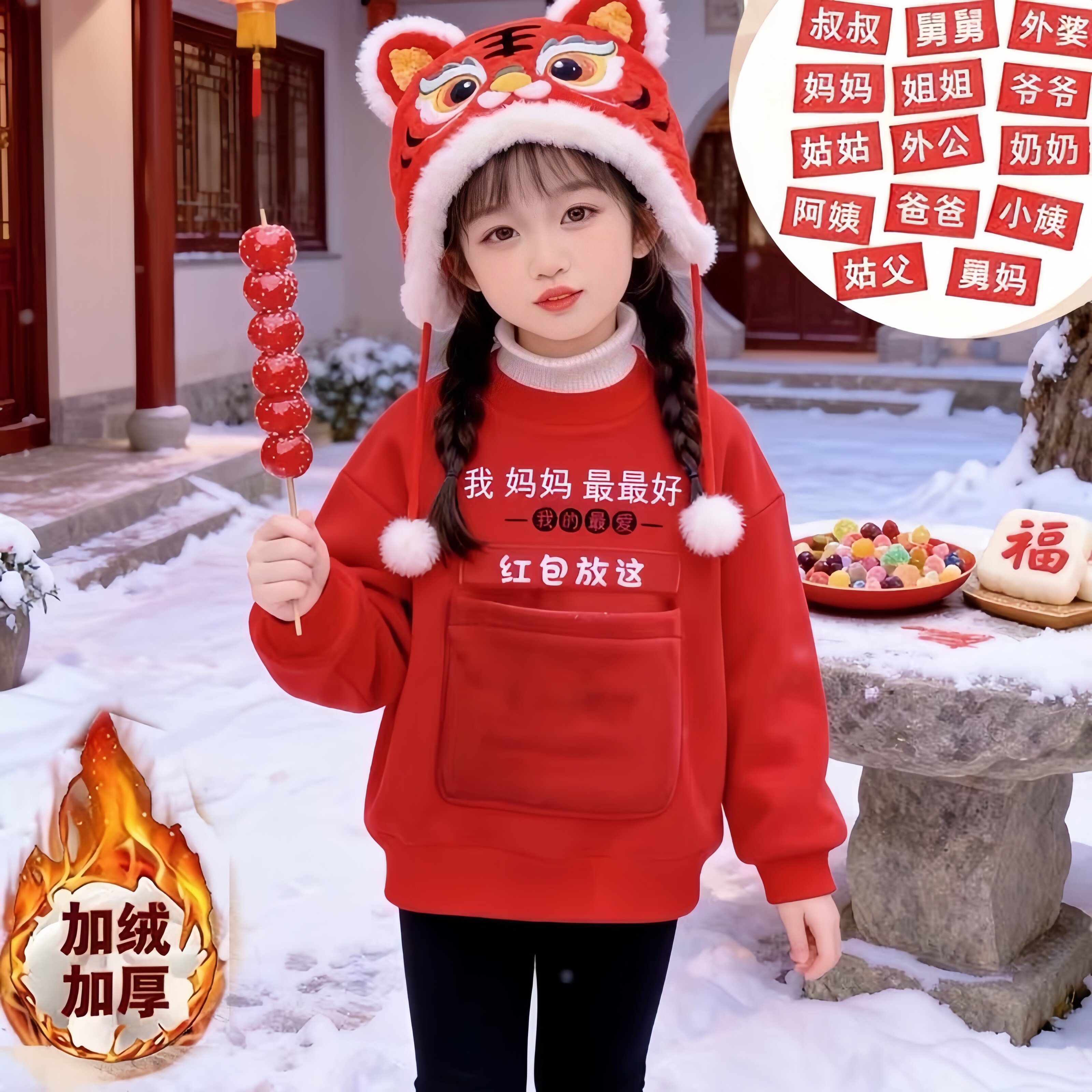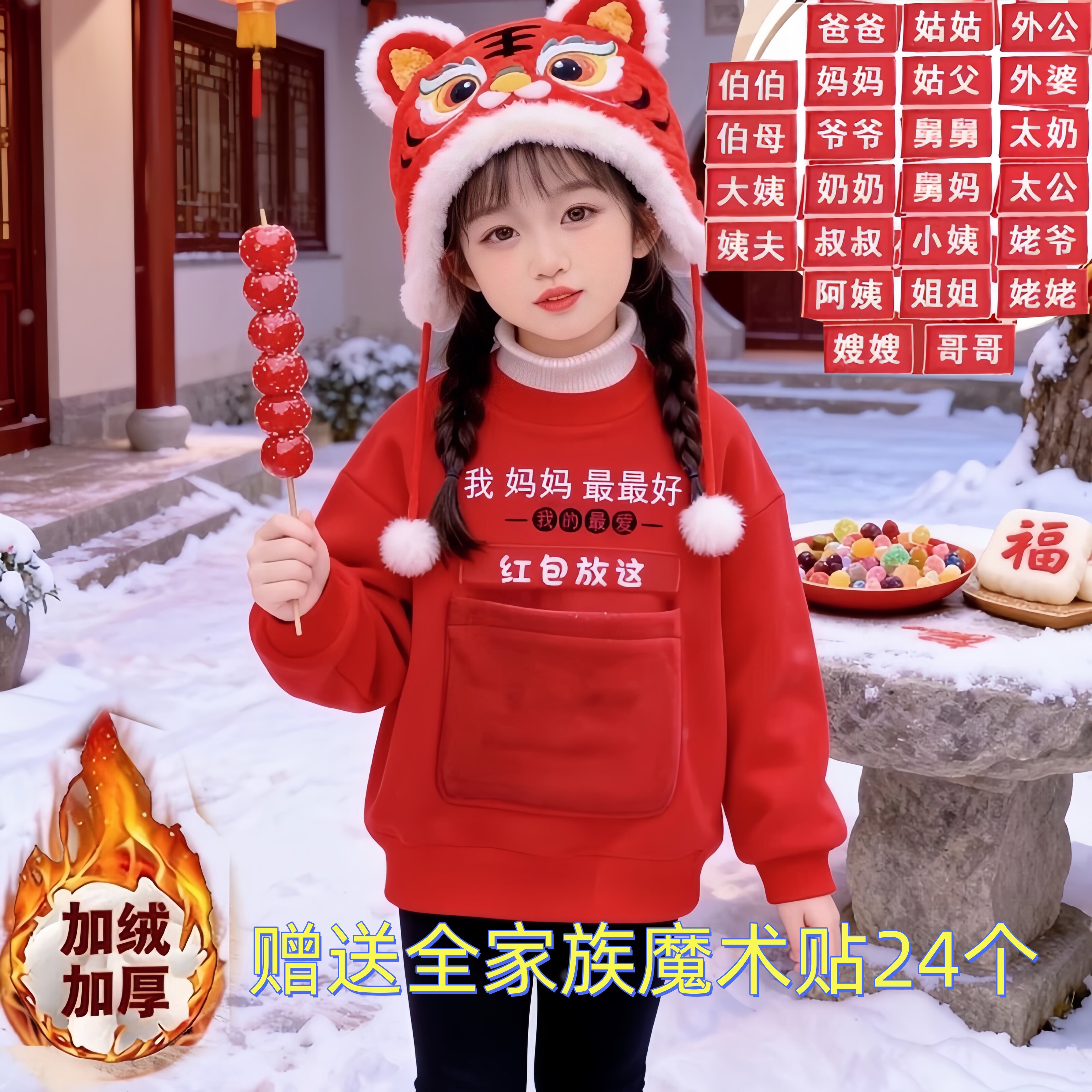 📚 红包放这新年卫衣加绒加厚秋冬儿童男女不包可换称呼搞怪拜年衣服