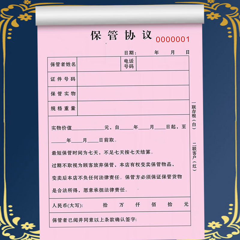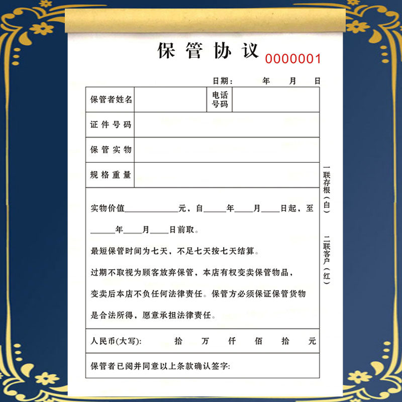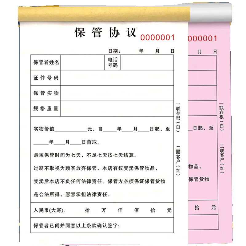 📚 保管协议保管单寄售物品保管单寄卖协议抵押协议回收登记表定制