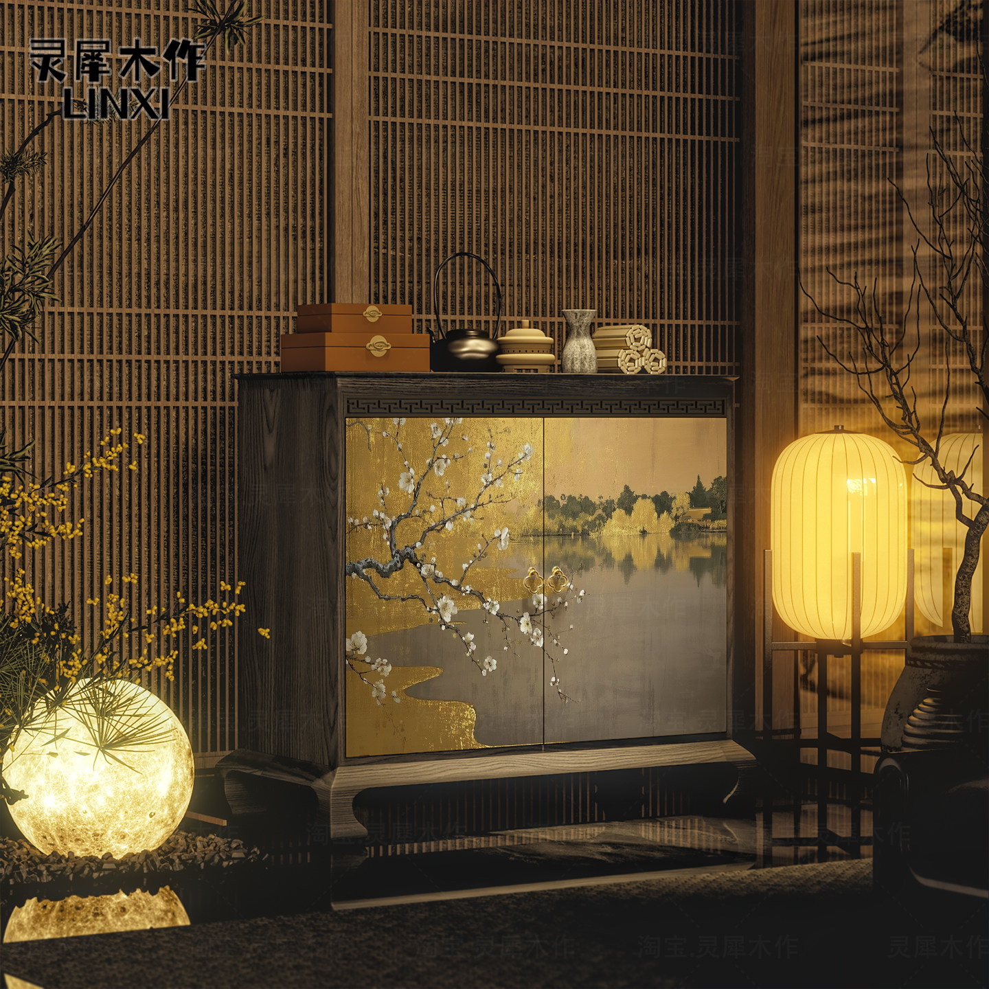 📚 宋氏美学餐边柜复古玄关柜实木中古风收纳柜新中式实木艺术储物柜