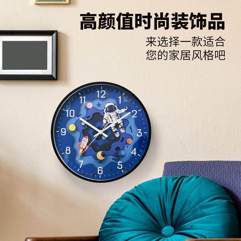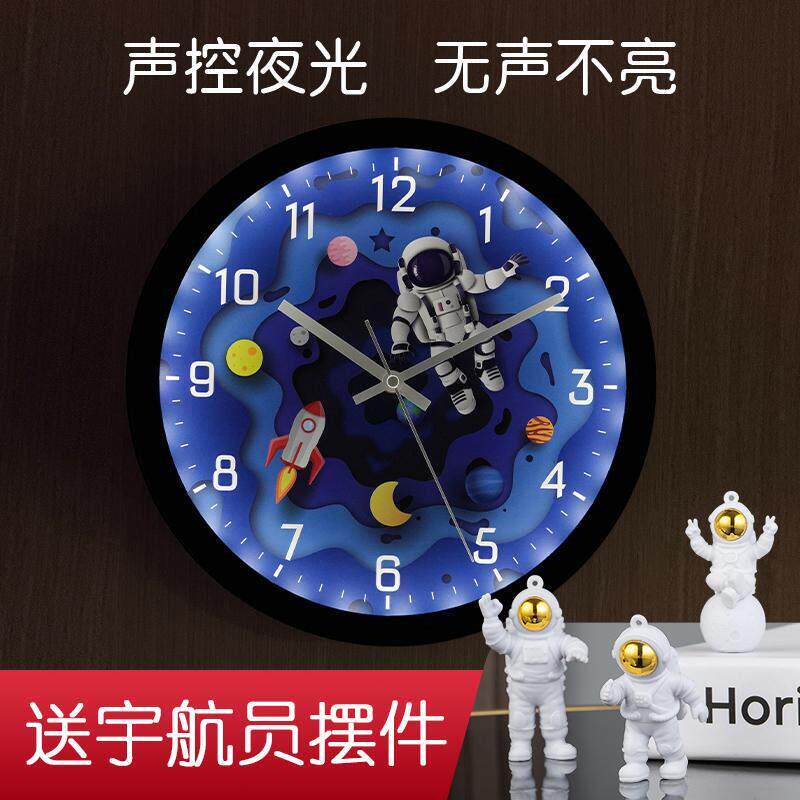📚 智能LED声控夜光挂钟客厅挂表静音钟表太空宇航员石英钟挂墙时钟