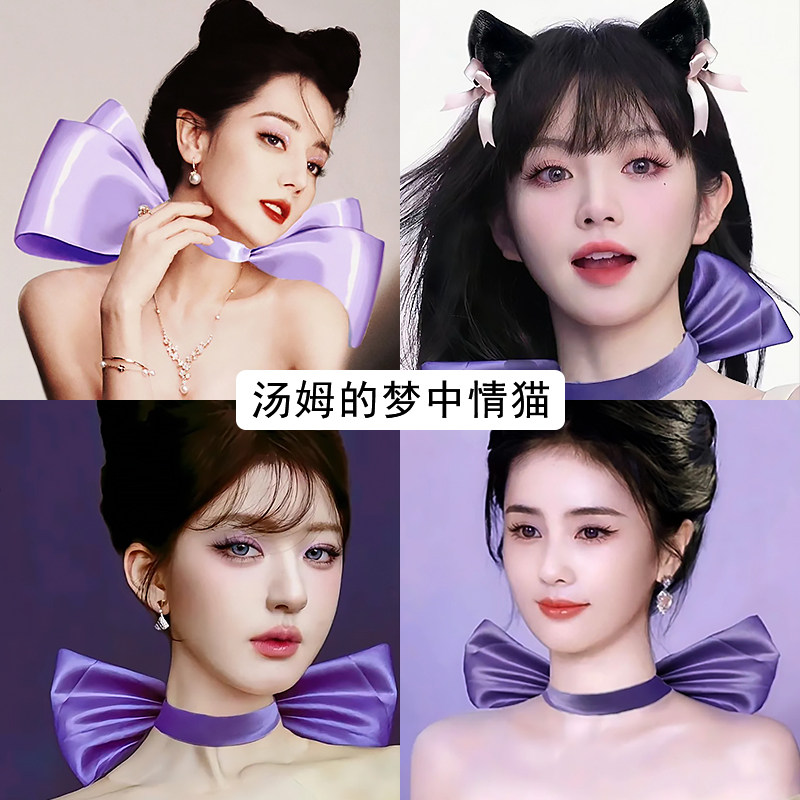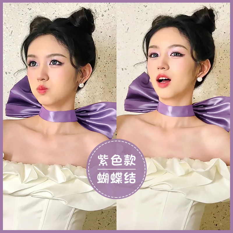 📚 周也同款紫色超大蝴蝶结项链cos汤姆梦中情猫项圈颈链拍照配饰女