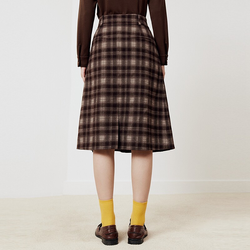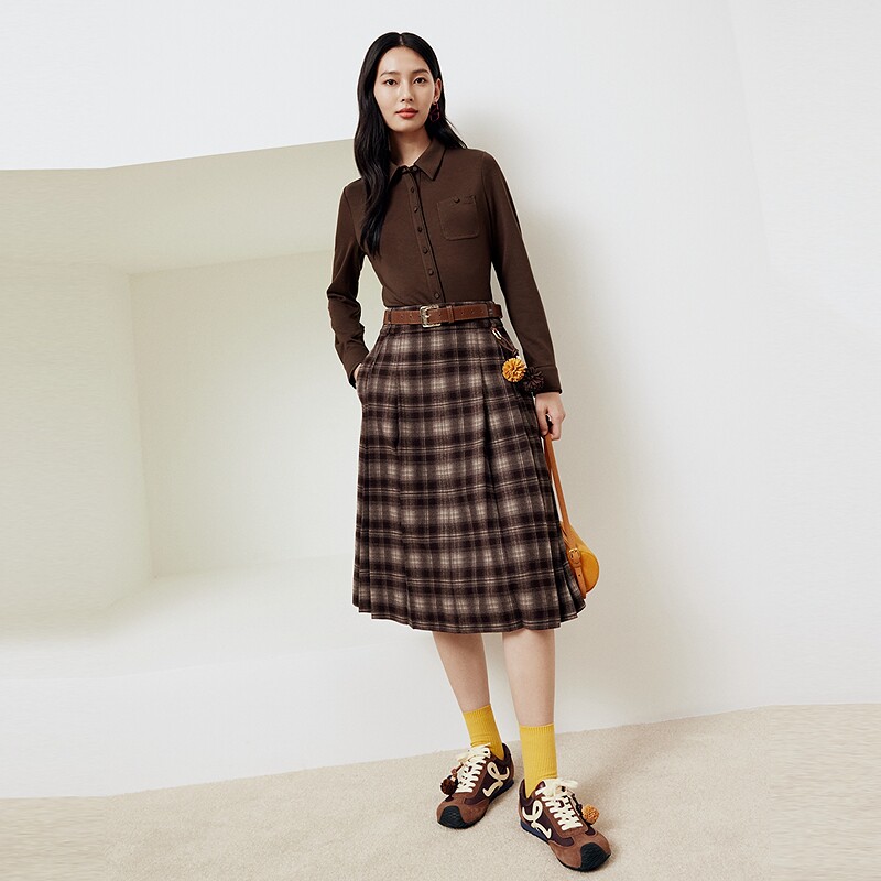 📚 firststation减龄时尚咖色格纹A型百褶半身裙女25秋新款3325A