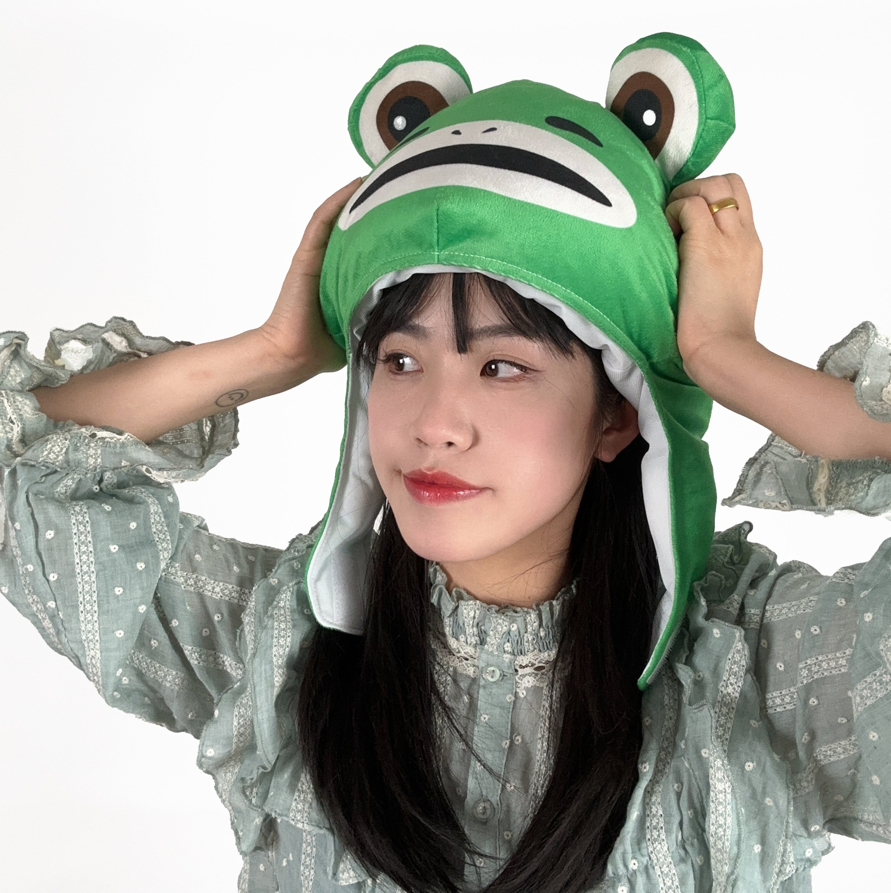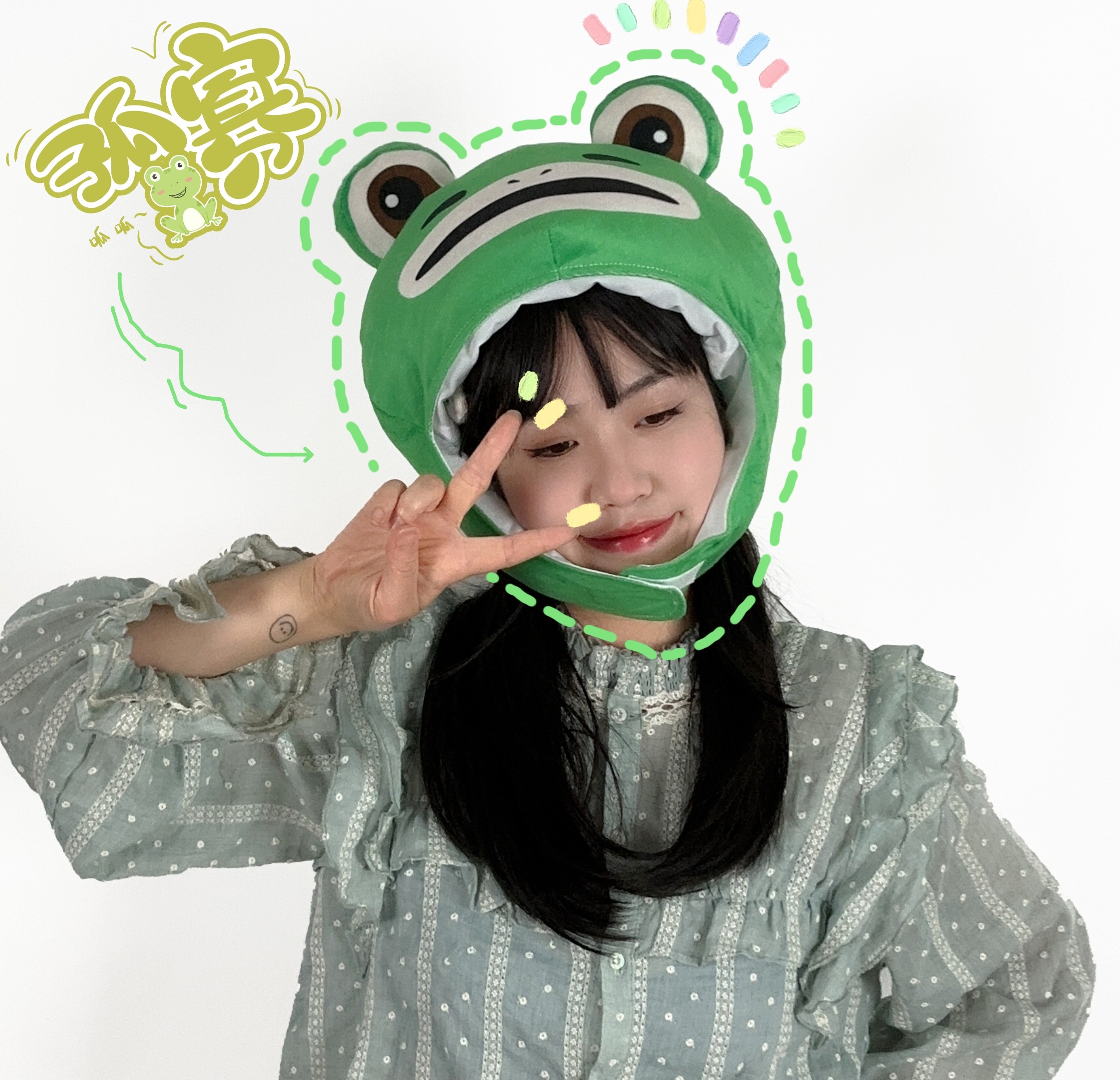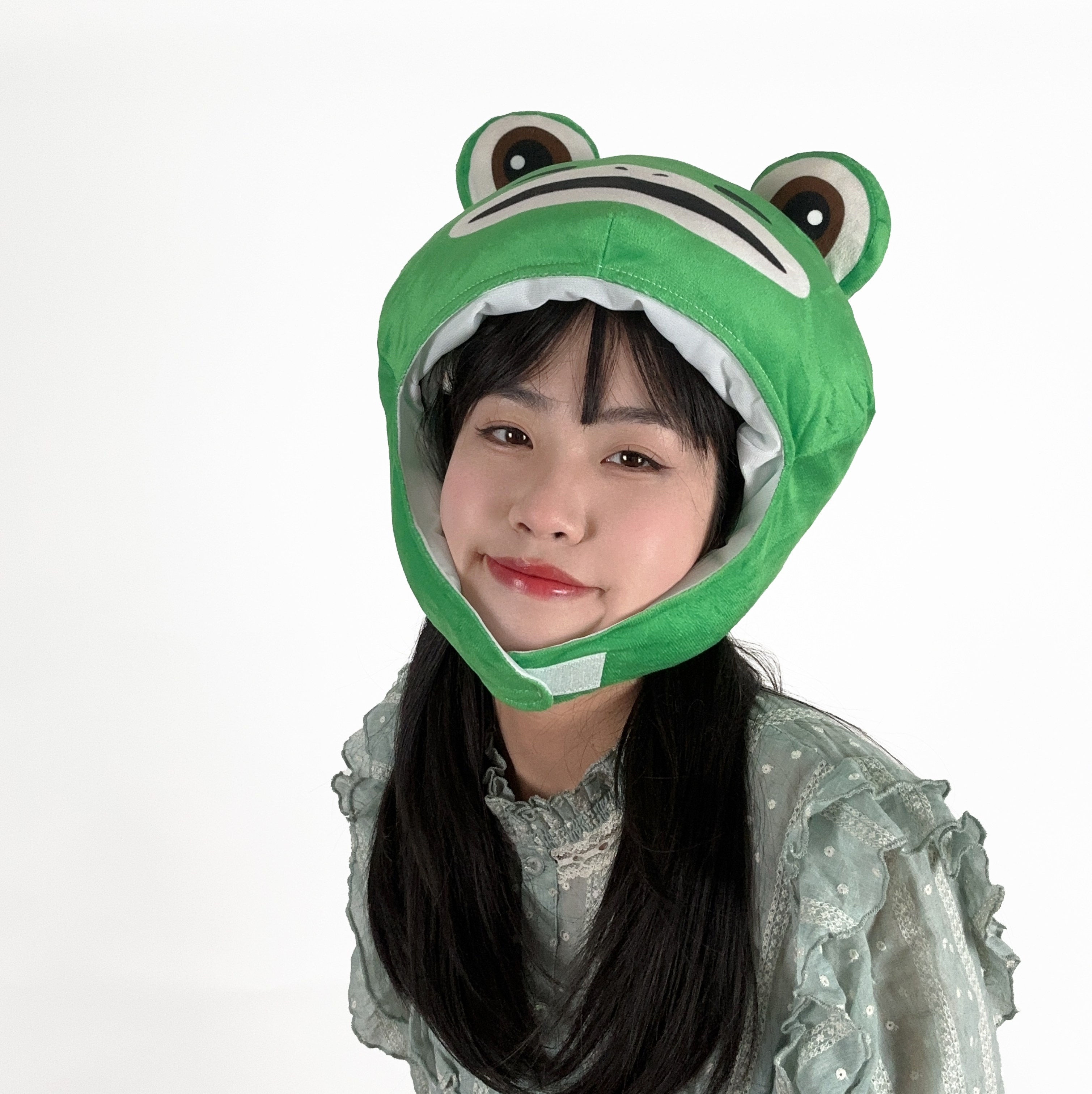 📚 可爱搞怪卡通ins均码绿色卖气球的青蛙头套帽子青蛙王子拍照逛街