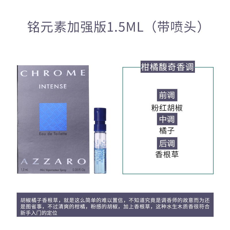 📚 Azzaro阿莎罗Chrome铬元素纯粹酷蓝唯我运动男士香水试管小样包邮