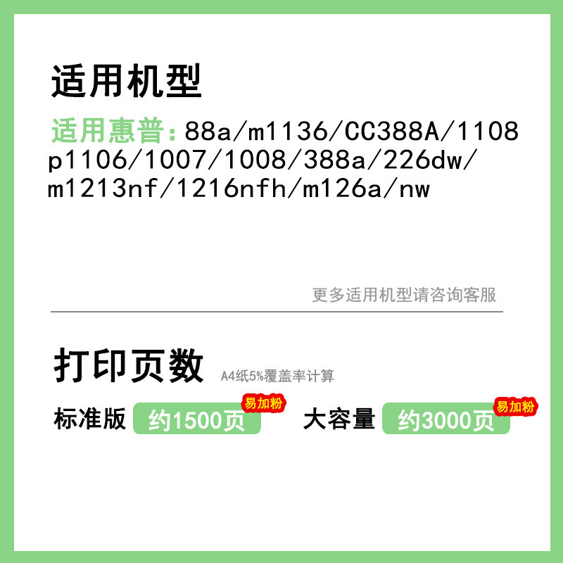 📚 英联适用于惠普88a硒鼓hpm126a 1213 1136 1108易加粉p1008 1007 1106plus 226DW 1213nf 1216nfh CC388A碳粉