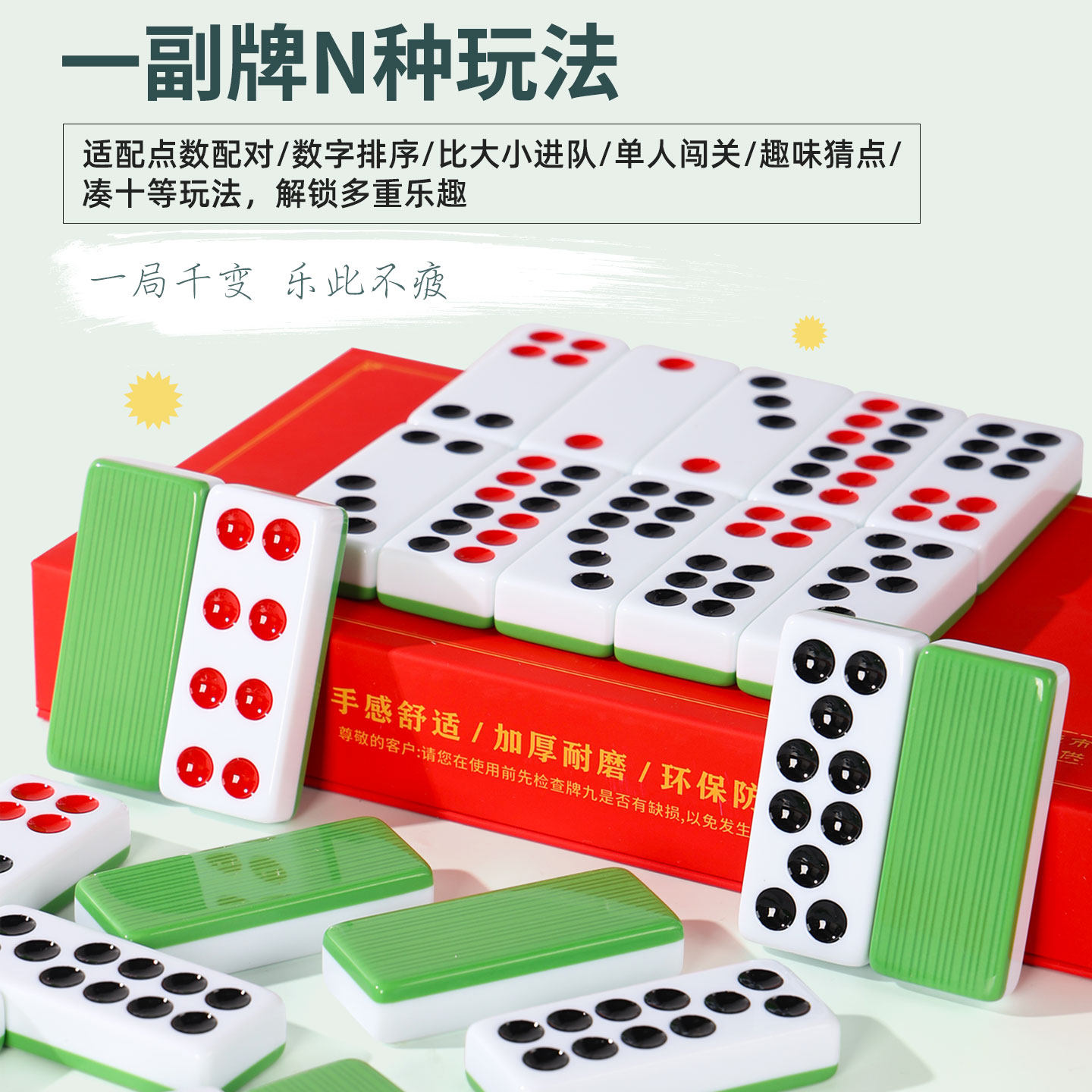 📚 牌九牌骨牌家用推排九天九四色牌密胺老人成人长牌大号加厚多色