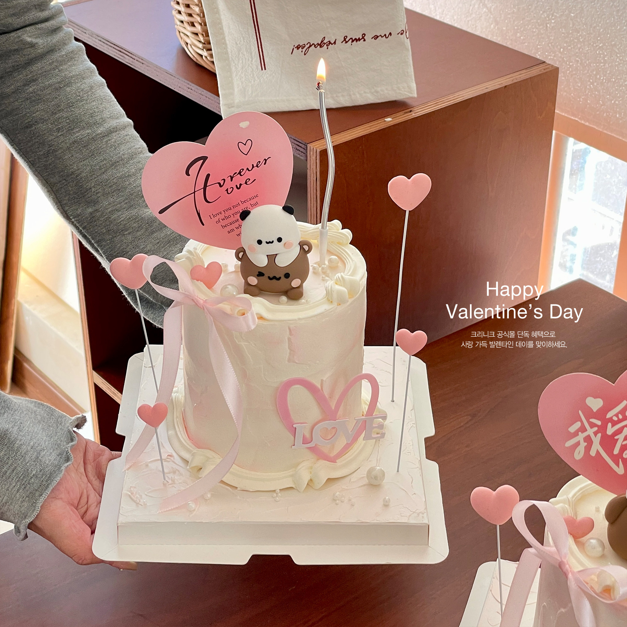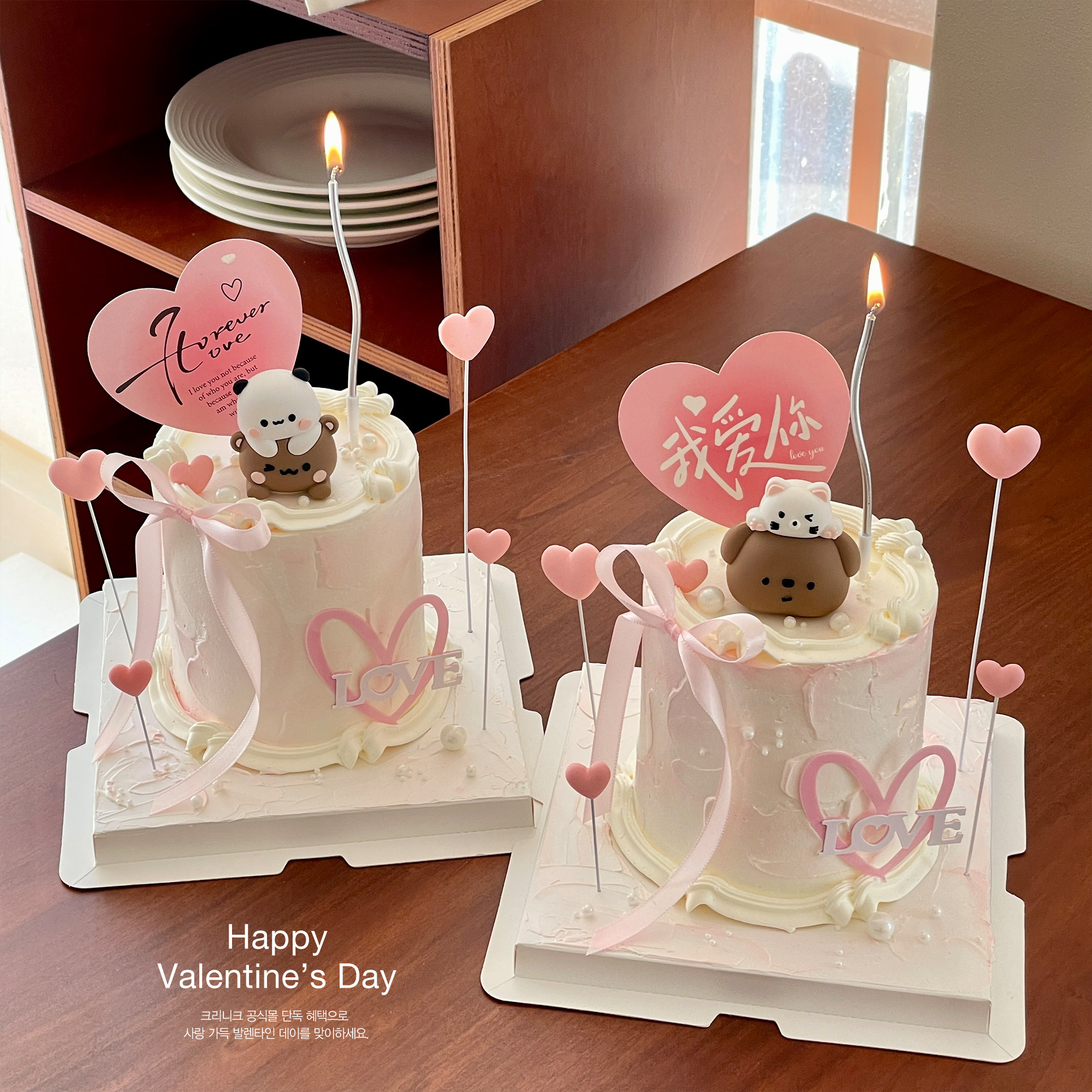 📚 2.14情人节蛋糕装饰情侣小熊叠叠乐摆件爱心告白love亚克力插件
