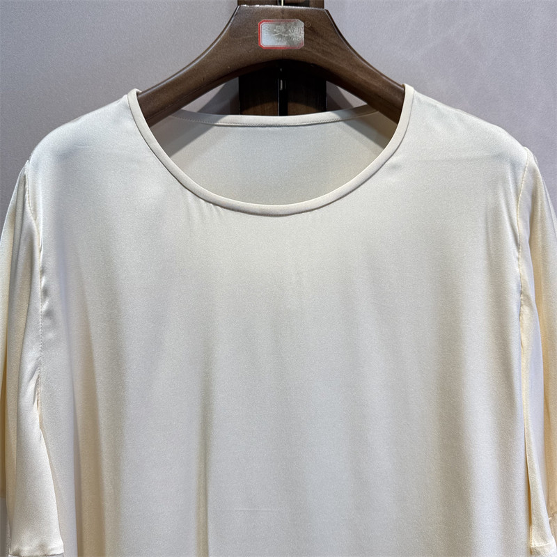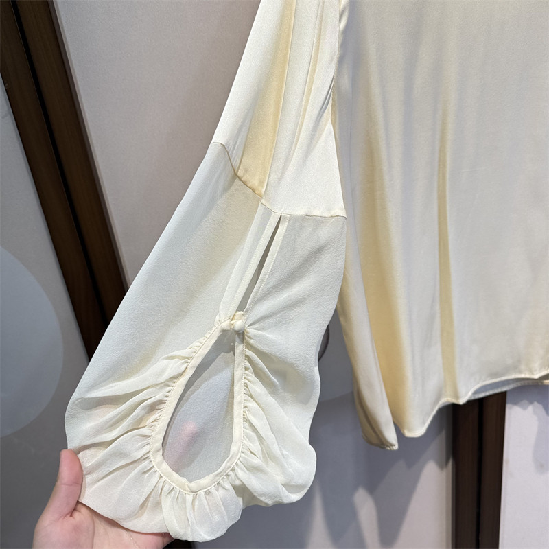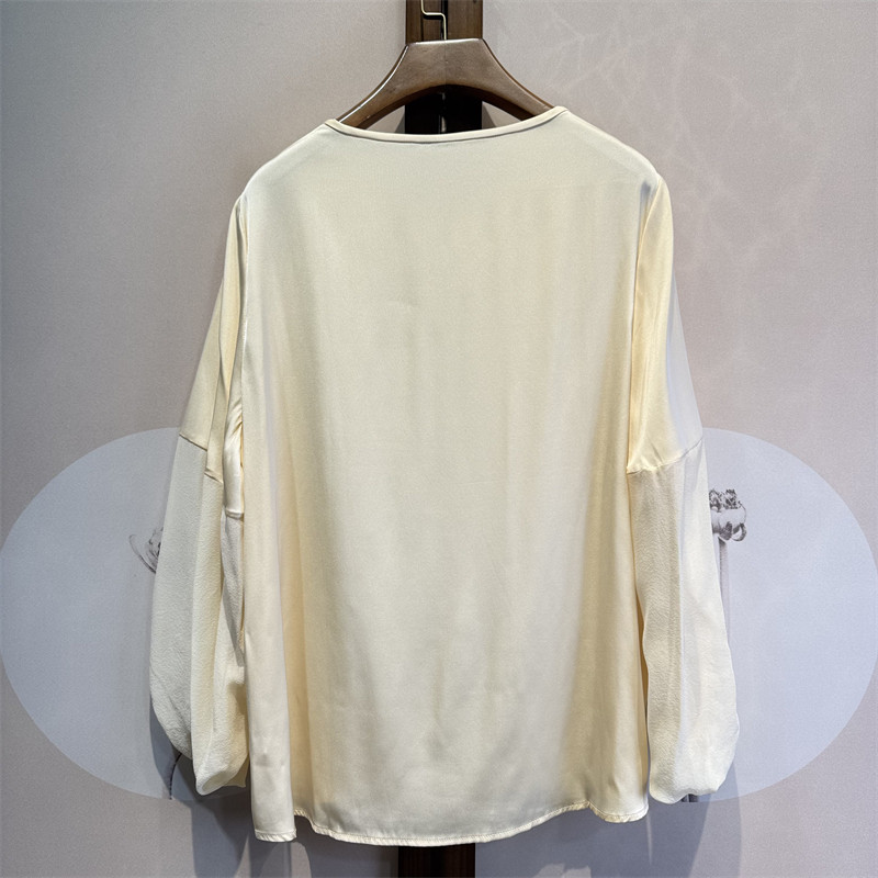 📚 真丝弹力双乔拼乔琪纯色百搭圆领长袖通勤衬衫桑蚕丝上衣28-1-2