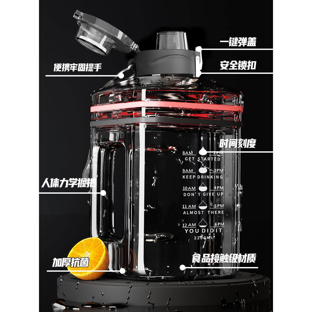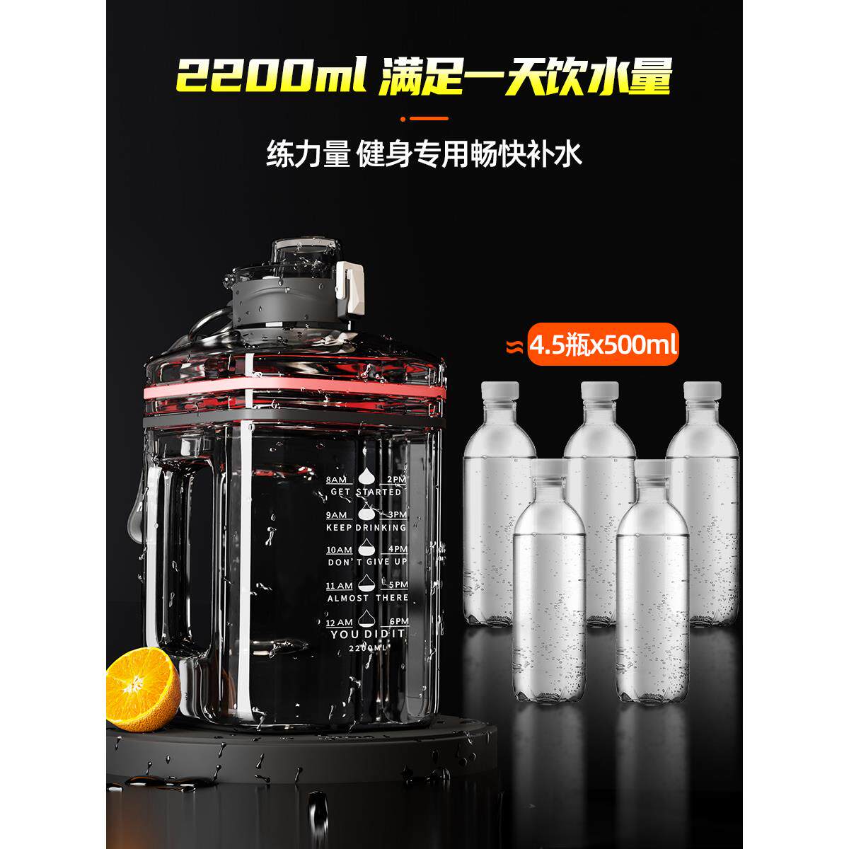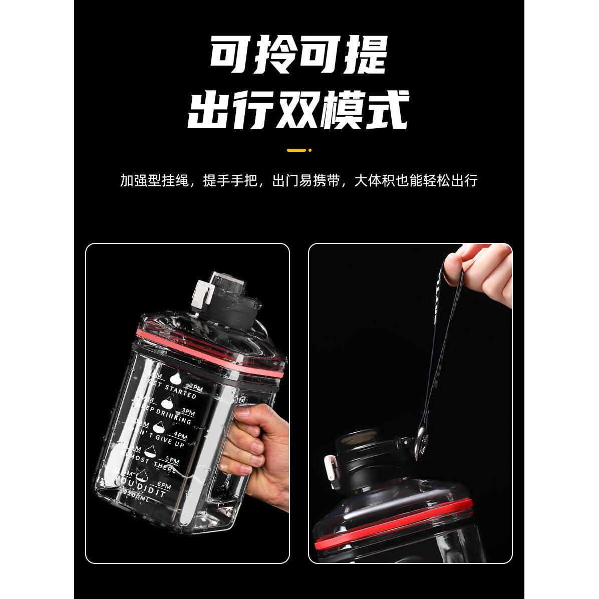 📚 2L运动墩墩桶水杯水瓶大容量男耐高温健身大水壶2000ml顿顿吨