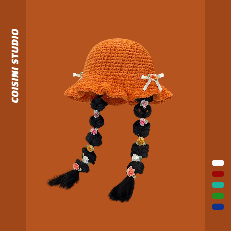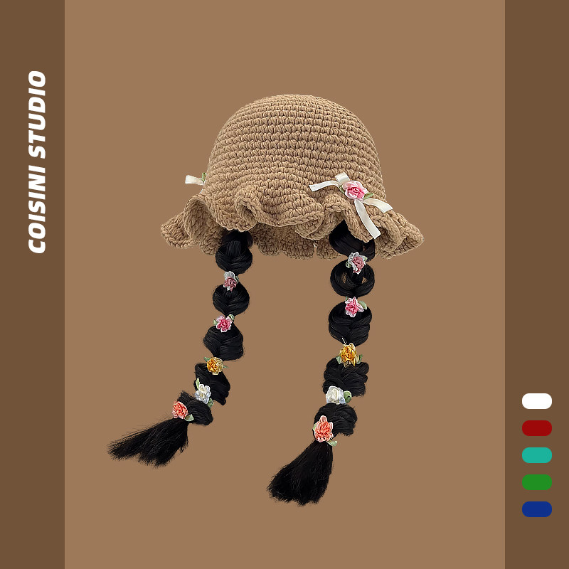 #新款帽子 #假发一体女生长发 #麻花辫针织盆帽 #秋冬百搭 #渔夫帽 #券后价55