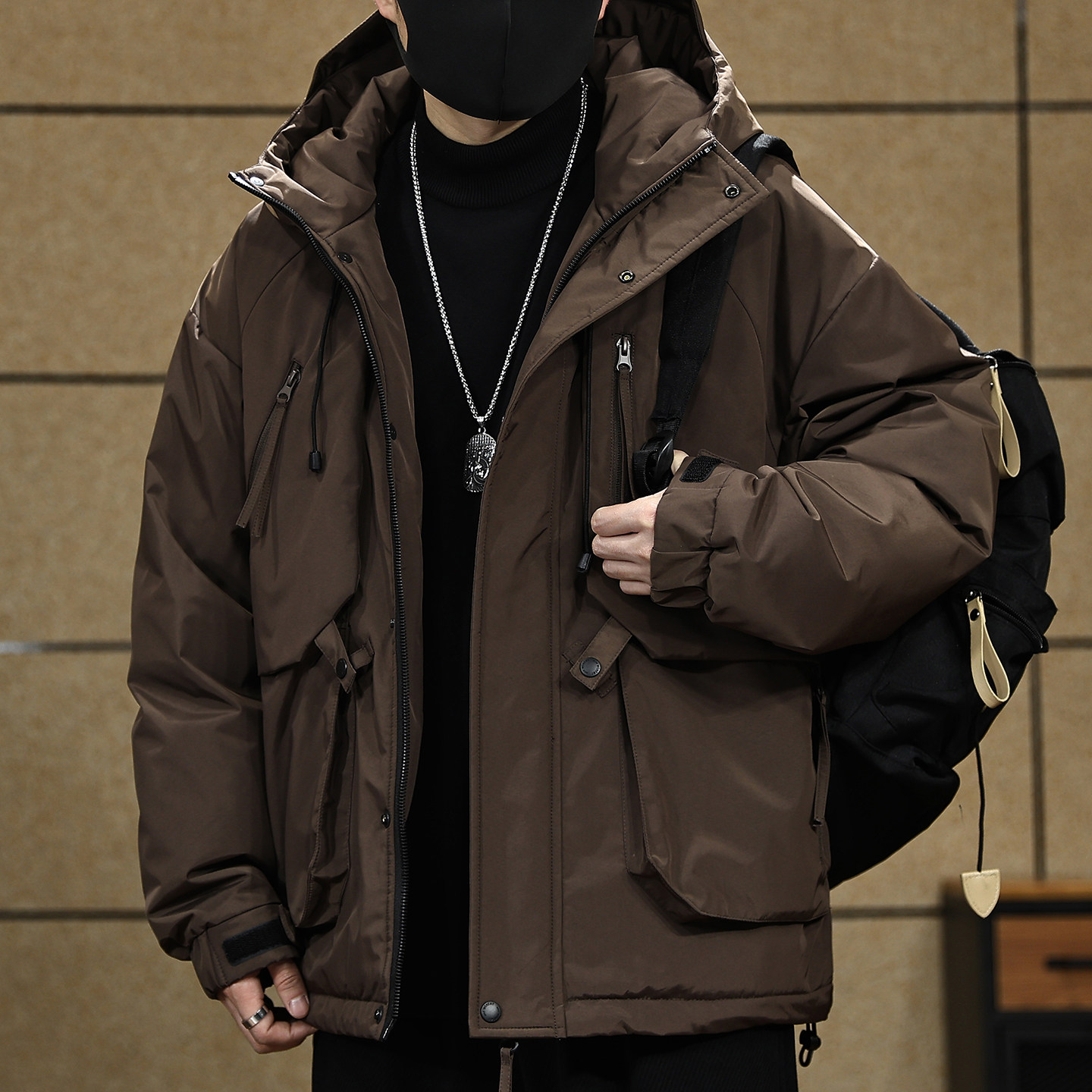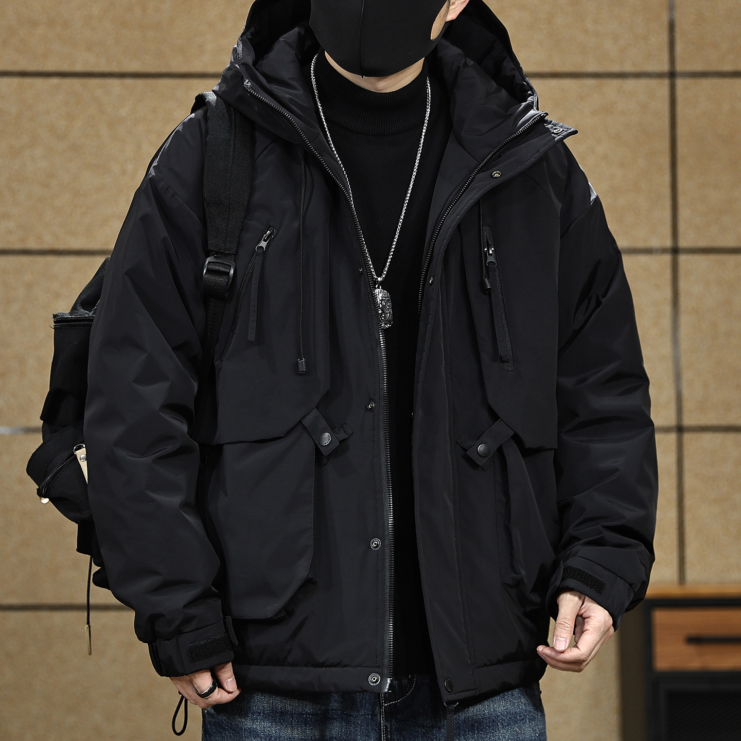 📚 90鸭绒工装连帽羽绒服男款冬季潮牌大码宽松户外加厚保暖羽绒外套