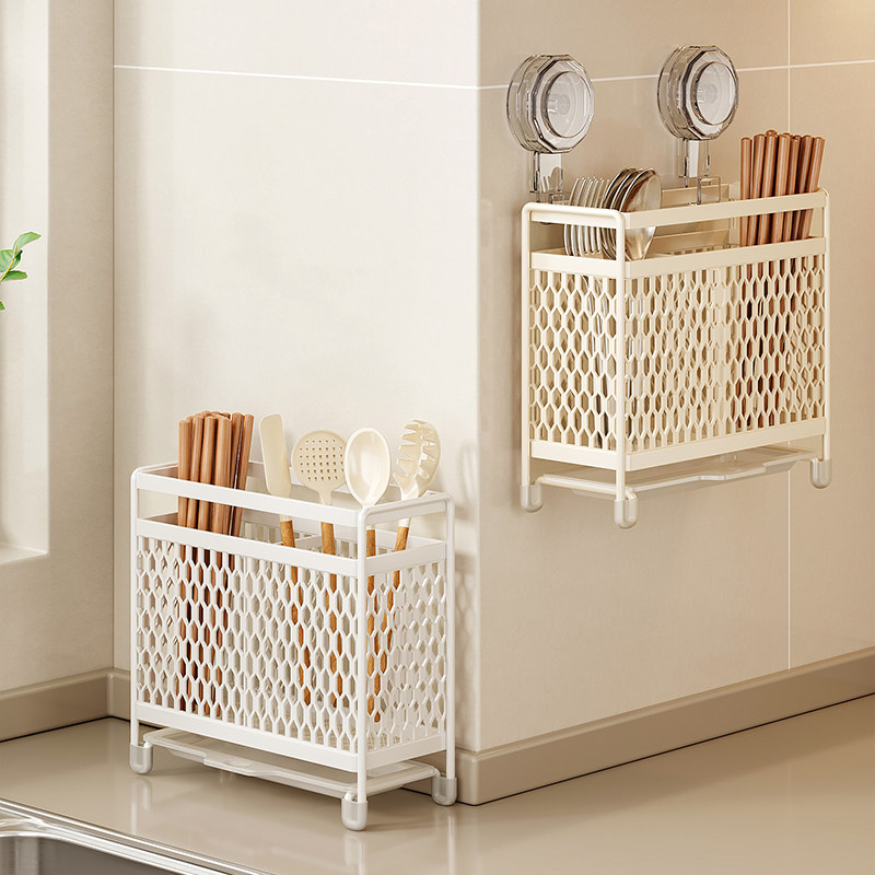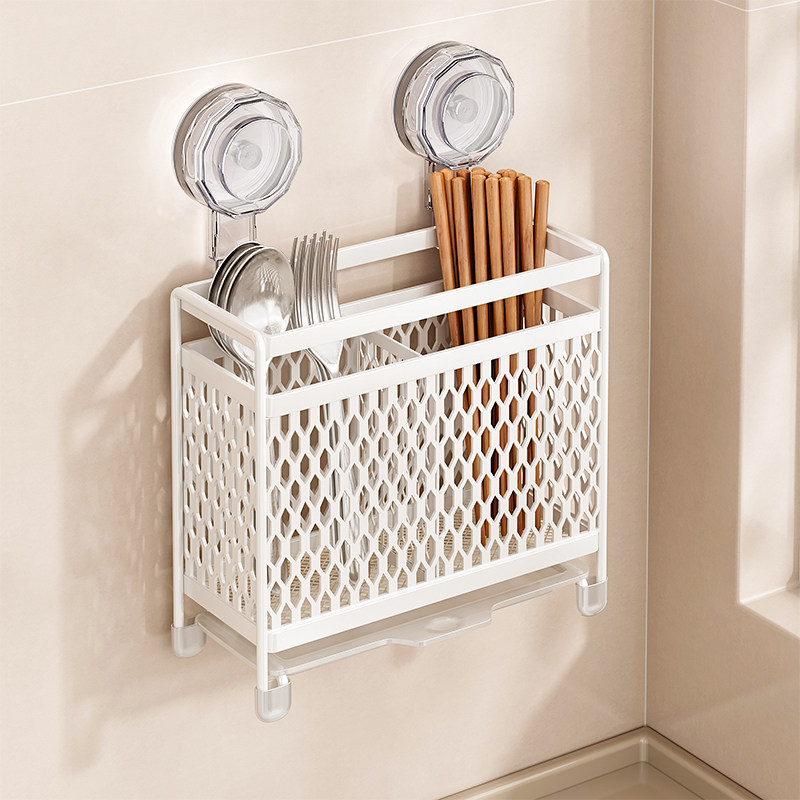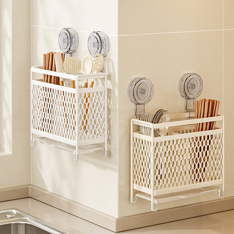 📚 吸盘筷子收纳盒壁挂沥水勺子家用防霉收纳架厨房新款多功能筷子筒
