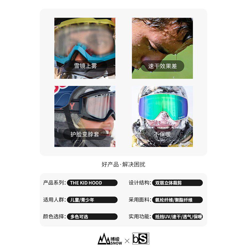 📚 BS滑雪护脸儿童运动骑行单板面罩男速干加厚双板头套女透气保暖