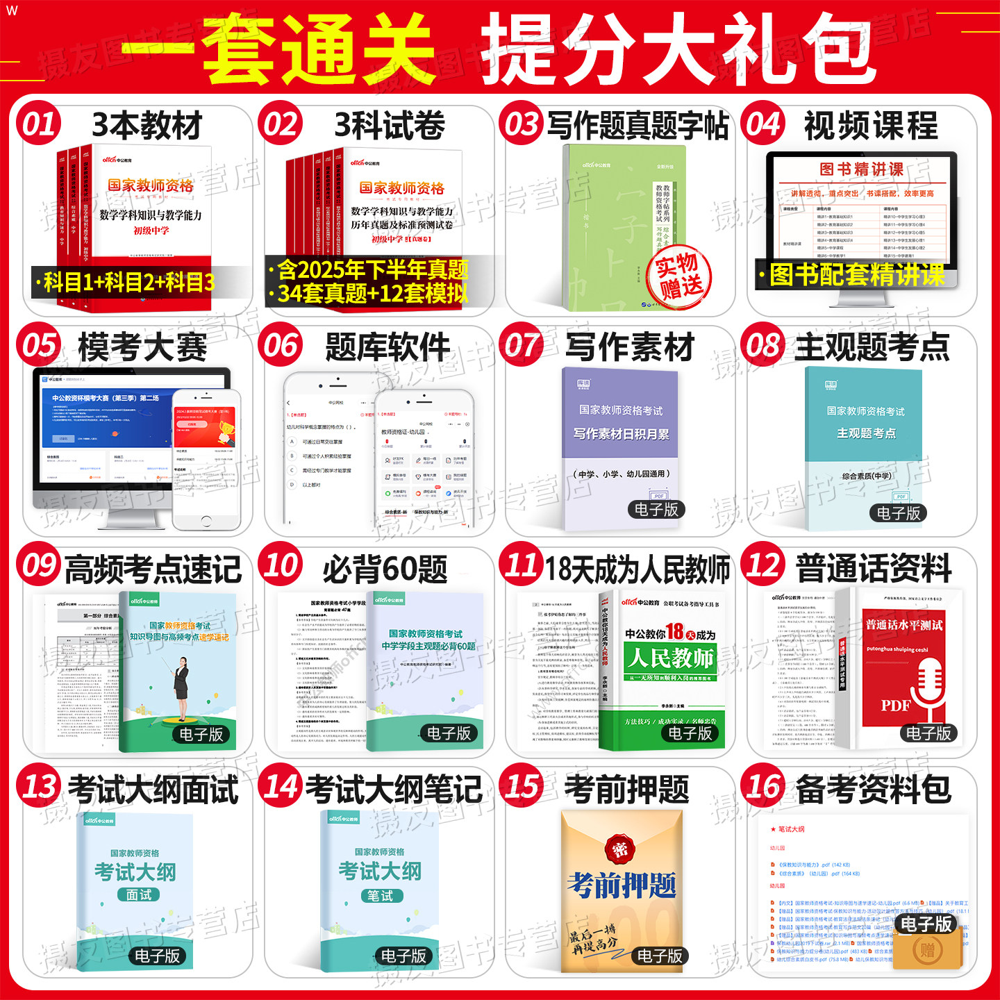 📚 中公教资考试书籍2026上半年中学教师证资格专用教材真题库试卷26年中公教育初中高中数学语文英语美术三科一科目二中职2025下资料