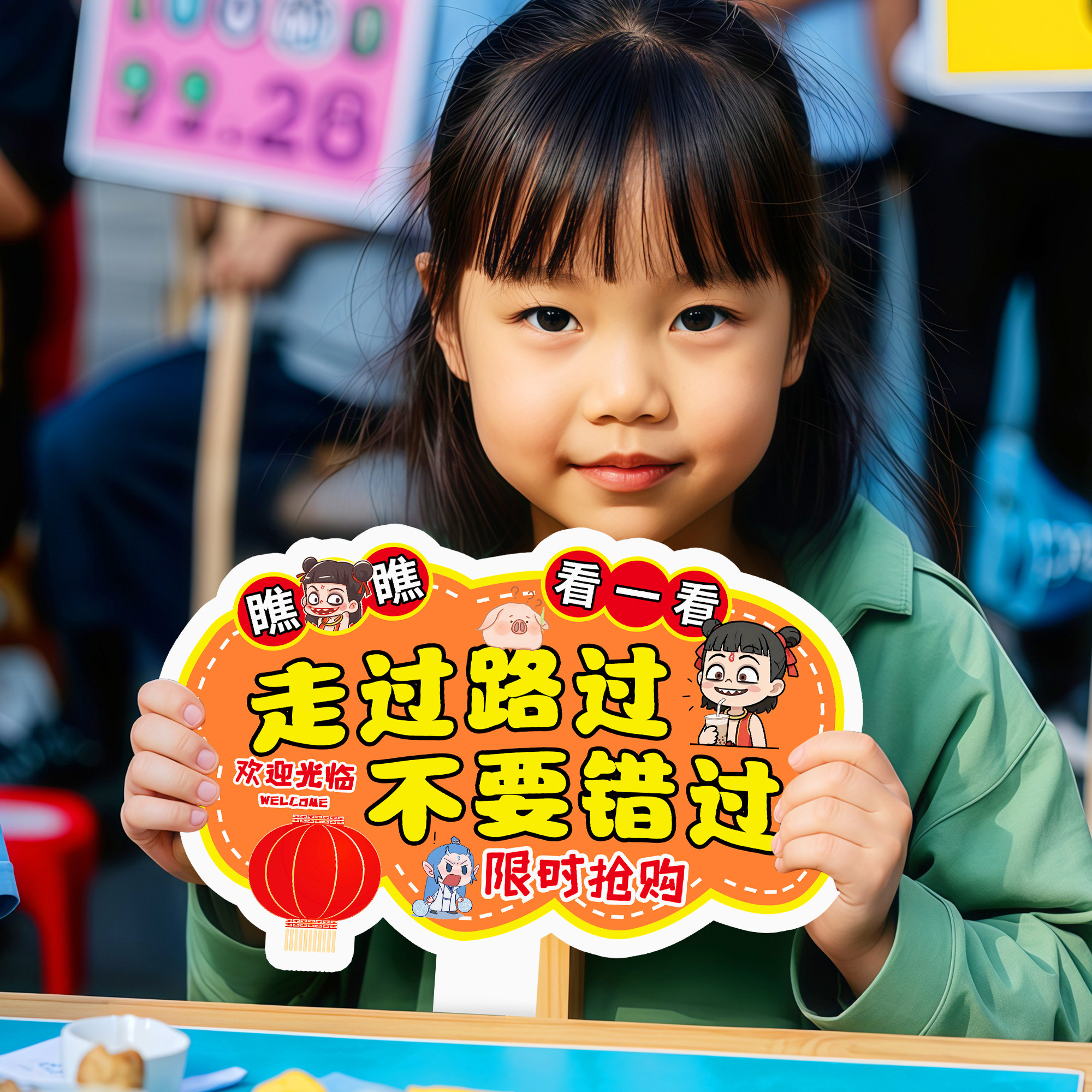 📚 儿童跳蚤市场摊位牌海报幼儿园义卖摊位装饰手举牌摆摊展示广告牌