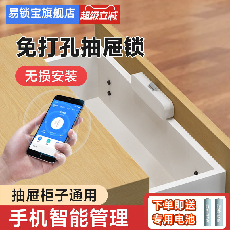 📚 易锁宝免打孔抽屉锁暗装柜子锁衣柜鞋柜双开柜门锁手机蓝牙开锁