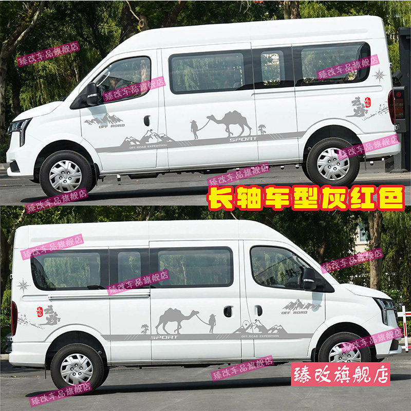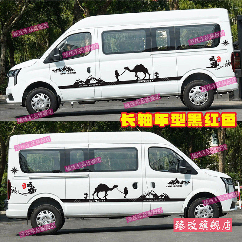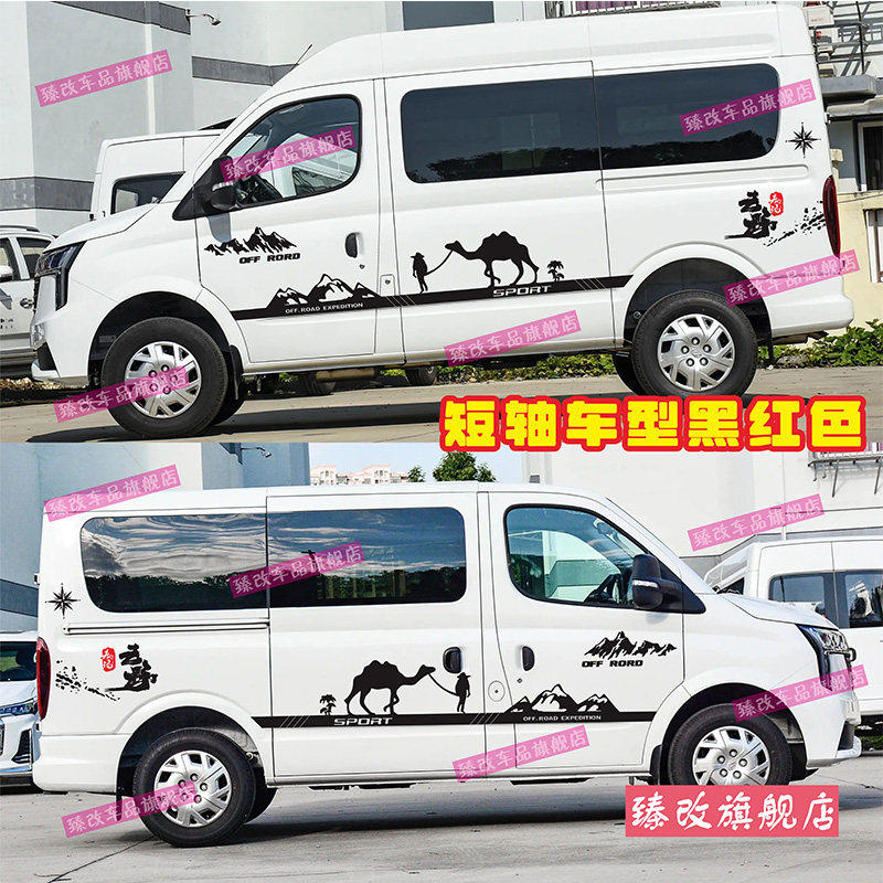 📚 大通V80pro车贴拉花 v80plus骆驼个性车身改装露营房车彩条贴纸画