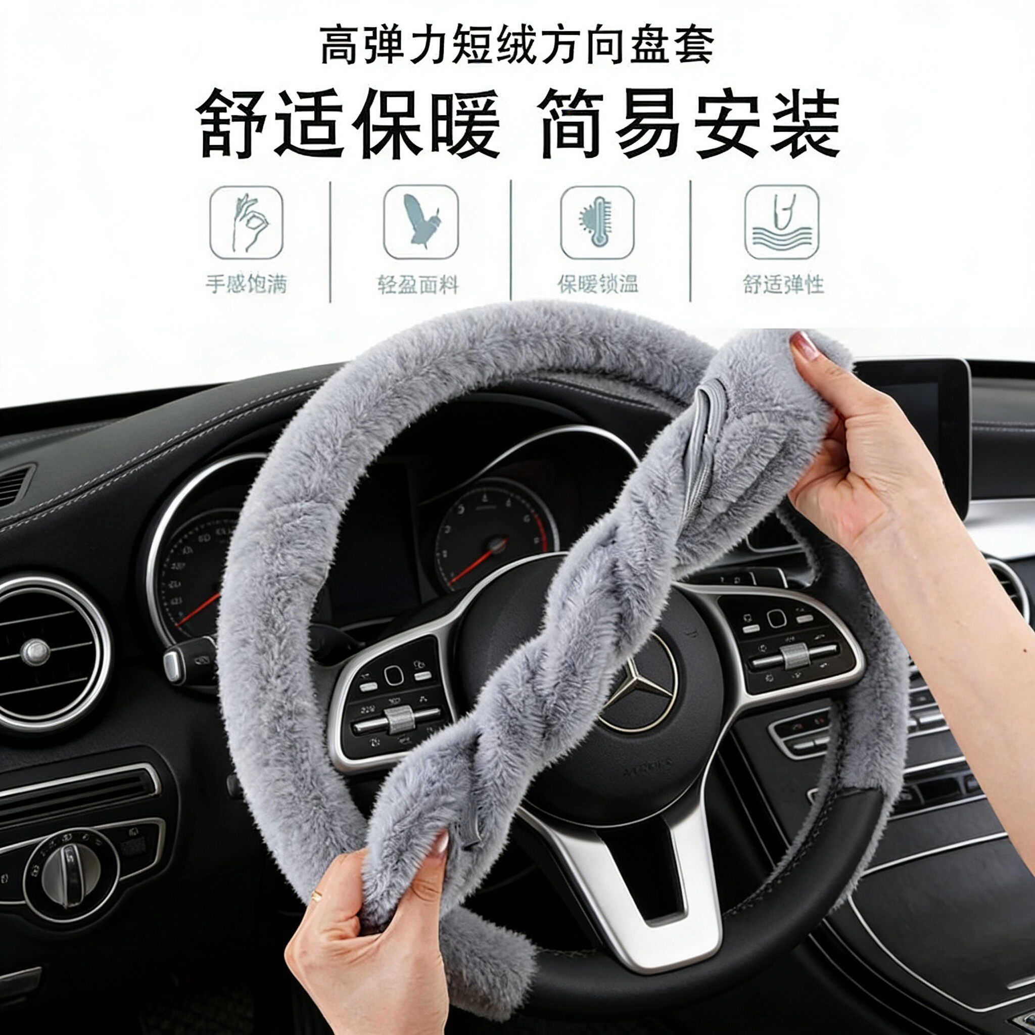 📚 汽车方向盘套冬季短毛绒2026新款车把套冬天保暖加热防滑内饰用品