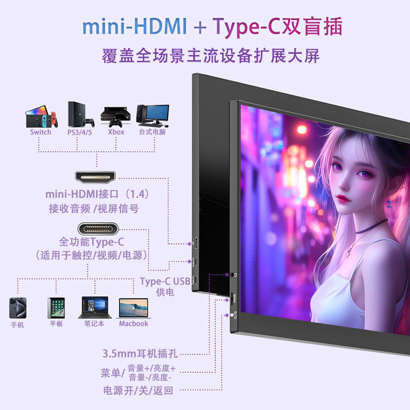 📚 便携显示器IPS 16寸14寸15.6寸144HZ笔记本扩展屏PS4/SWITCH副屏