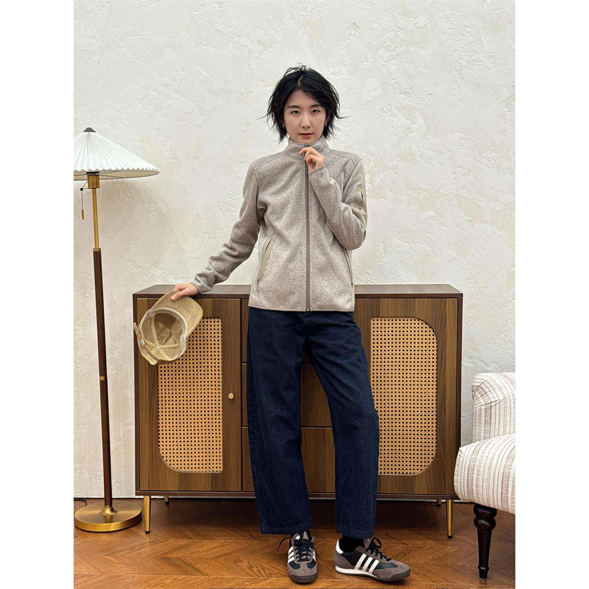 📚 周浪清燕麦色立领加绒拉炼卫衣外套女2025新款秋季宽松保暖抓绒衣