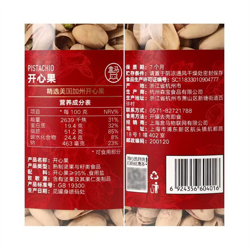 09¥ CA381 EQRrUuE8Pw8¥ https://m.tb.cn/h.id7tftJ 盒马开心果420g罐装原味颗粒饱满自然开口紫衣绿仁原色不漂白零食 --------------------- 【原售价】79.8元 【现售价】79.8元。