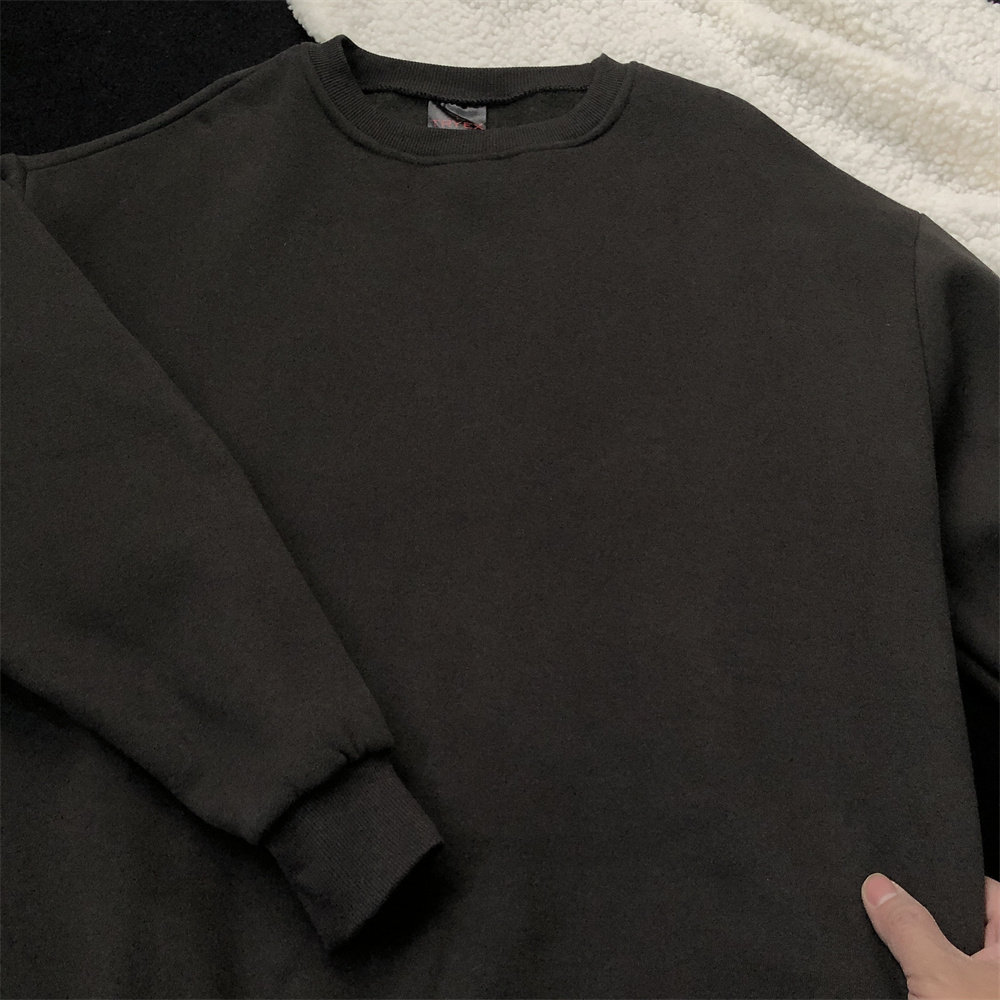 📚 碳灰色加绒圆领卫衣男春秋季炭灰色不带帽男生深灰色男士纯色上衣