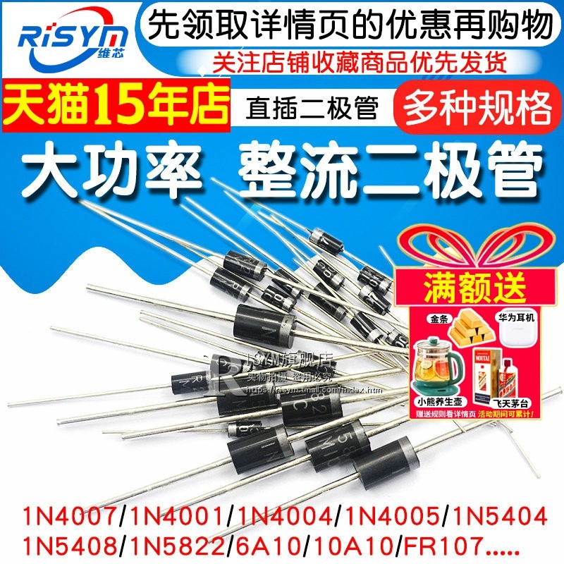 📚 1N4007 10A10 1N5408 1N5819 4001 5822整流二极管级快恢复IN4007
