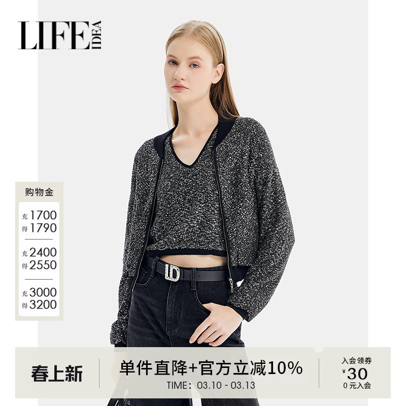 📚 莱芙艾迪儿秋冬新款经典个性帅气针织衫女时髦摩登小众开襟针织衫