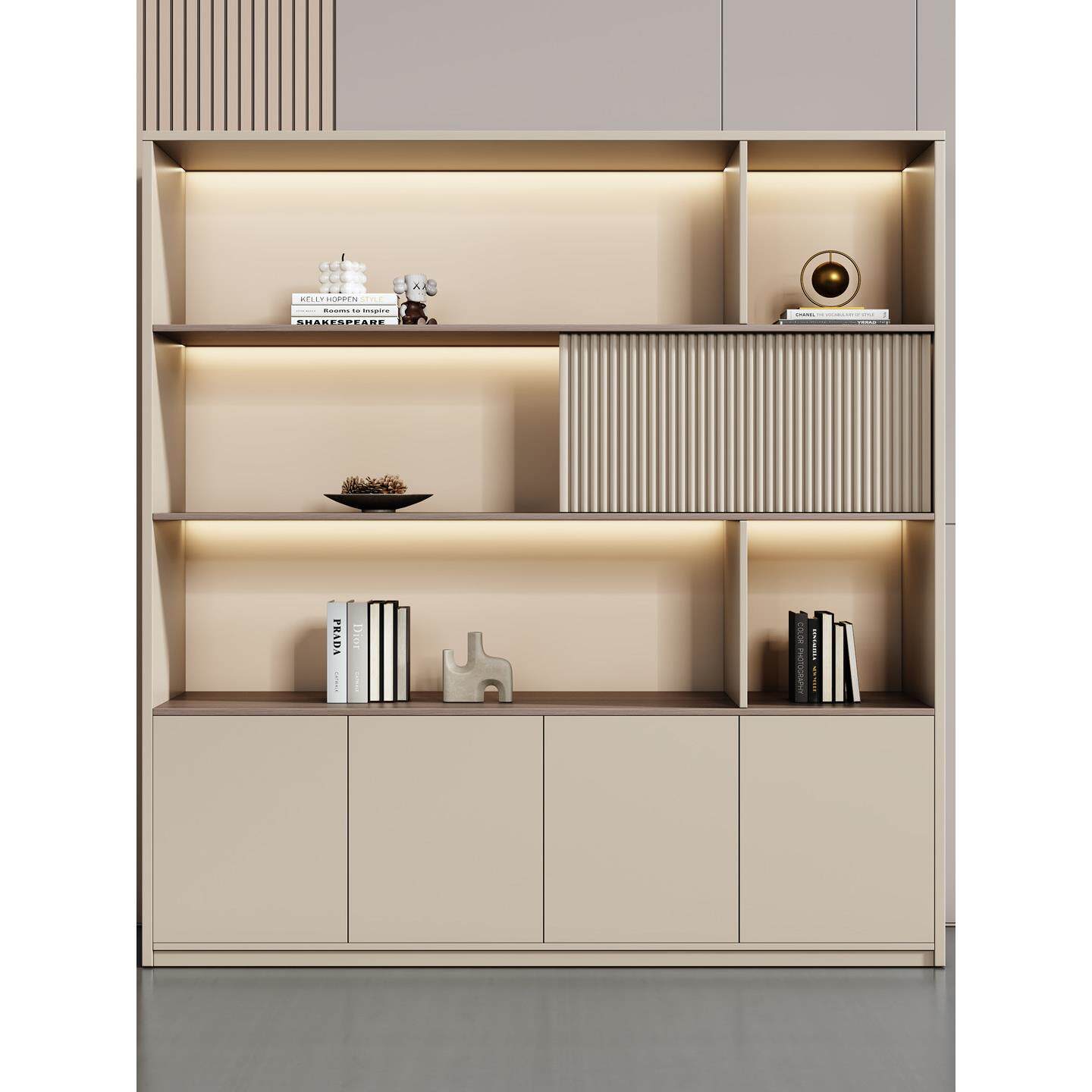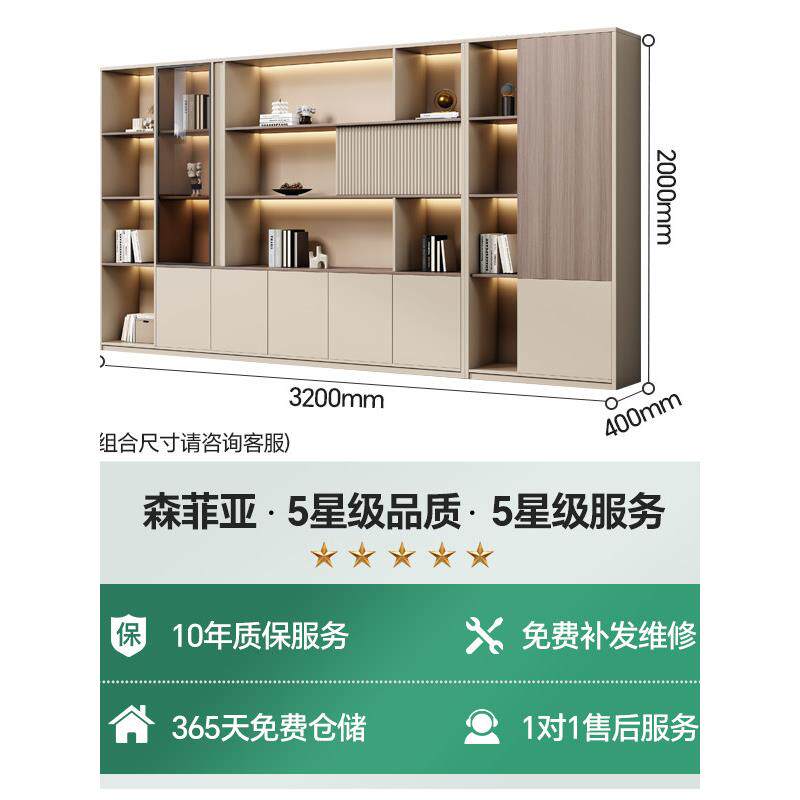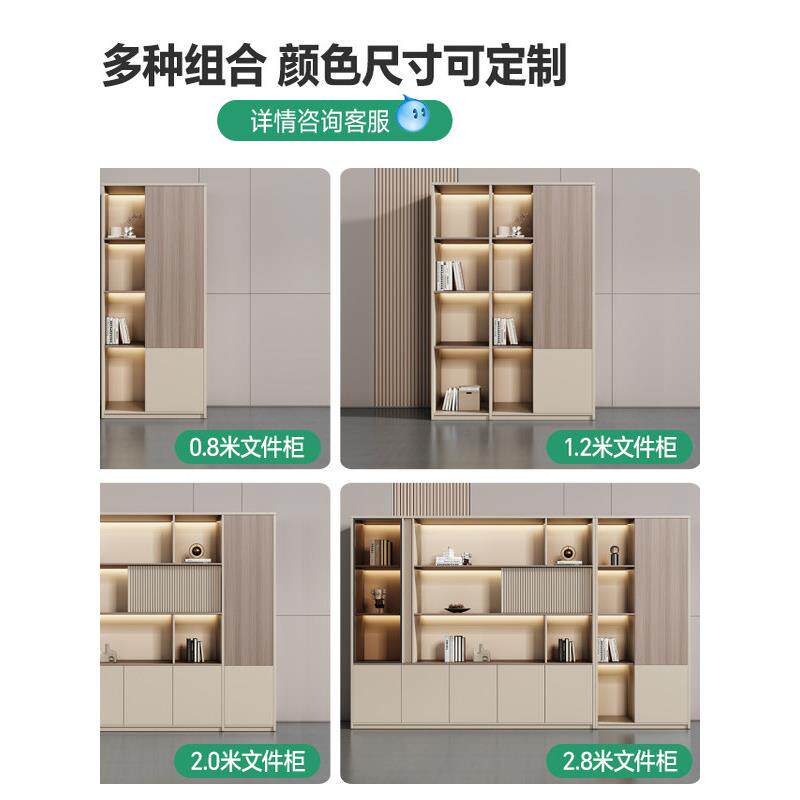 📚 办公室文件柜木质老板桌背景柜资料架档案收纳储物玻璃门书柜书架
